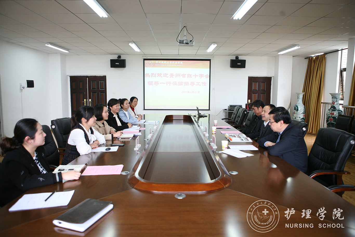 4月12日上午,贵州省红十字会组织宣传部匡传益部长一行3人到williamhill中国官网入口就中国南丁格尔志愿护理服务分队申请及“5.8世界红十字日”纪念活动相关事宜进行交流洽商。williamhill中国官网入口党委书记杨英、公司团委副书记(正处级)桂晓玲等领导和公司教师参加交流。williamhill中国官网入口党委副书记王秀红主持。