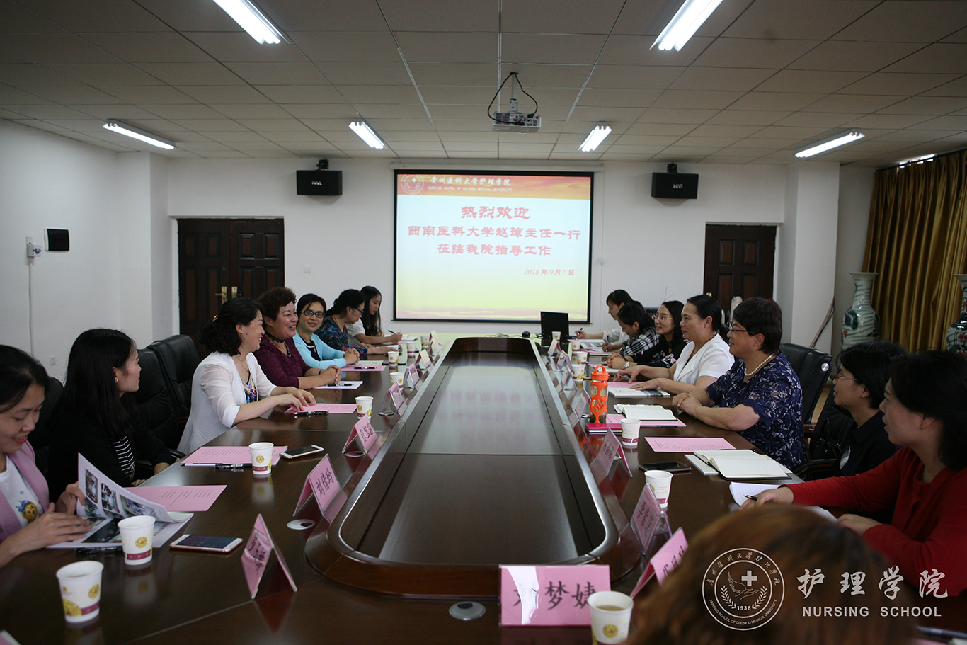 9月7日下午,西南医科大学教学评估中心主任赵琼教授、williamhill中国官网入口经理鞠梅教授一行15人到公司williamhill中国官网入口交流学习专业认证准备工作经验。williamhill中国官网入口在百川楼会议室召开了交流座谈会热情接待了赵琼一行,院领导班子及全体教职工参会。会议由公司副经理刘志燕主持。
