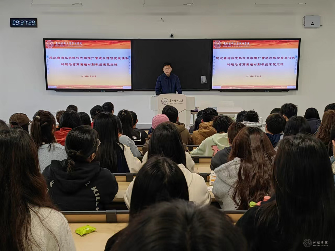 4月10日,台湾弘光科技大学推广营运处主任陈俊良及物理治疗系副教授黄维彬到公司交流。williamhill中国官网入口党委副书记兼纪委书记何为、副经理王秀红、副处级组织员张黎、公司国际交流合作处港澳台事务管理科科长龙章波、williamhill中国官网入口相关专业教师及2023级本科生代表近120余人参加交流活动。交流活动由王秀红主持。