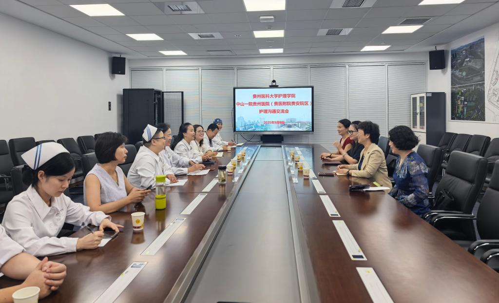 9月8日,williamhill中国官网入口经理王秀红、副经理刘志燕携教学科研管理科研究生工作秘书王丽、科员陈娇一行4人赴中山一院贵州医院(贵医附院贵安院区)与中山大学附属第一医院(中山一院)派驻的8位护理专家开展了护理人才培养帮扶交流会。中山一院贵州医院(贵医附院贵安院区)护理部负责人李亚玲、护理部副主任汤晋等相关老师参会。