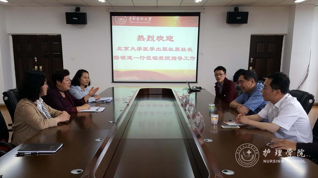5月24日,北京大学医学出版社原社长陆银道、出版社教材中心主任韩忠刚及市场部经理慈光辉一行莅临williamhill中国官网入口交流指导。教务处教材科、williamhill中国官网入口党政领导、教职工参加了座谈会,会议由williamhill中国官网入口党委书记兼经理贾秀英主持。