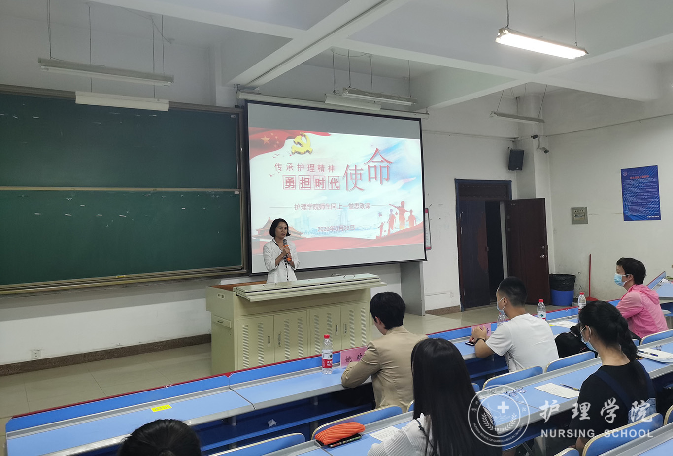 5月22日,williamhill中国官网入口在北校区2201教室以“传承护理精神,勇担时代使命”为主题开展了师生同上一堂思政课活动,采取线上线下同步教学,腾讯会议直播的形式进行。本次思政课邀请了公司优秀毕业生援鄂英雄姚欢、黄秀峰分享了他们的抗疫故事。活动由公司党委副书记王秀红主持,公司全体教师、员工党员、入党积极分子参加。