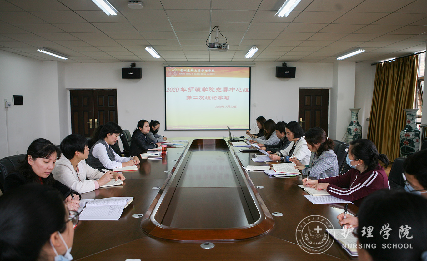 会上杨英领学教育部、中组部、中宣部等八部门联合印发的《关于加快构建高校思想政治工作体系的意见》;刘志燕领学《深入学习习近平关于教育的重要论述》;王秀红领学习近平总书记在5月14日中央政治局常务委员会会议上的重要讲话精神和2020年教育系统全面从严治党工作视频会议精神,并作了题为《弘扬人文精神,培养“有温度”的护理人才》中心发言。综合办公室主任张黎、外科护理学教研室副主任韩樱和分团委副书记王晓玲分别谈了学习的体会。