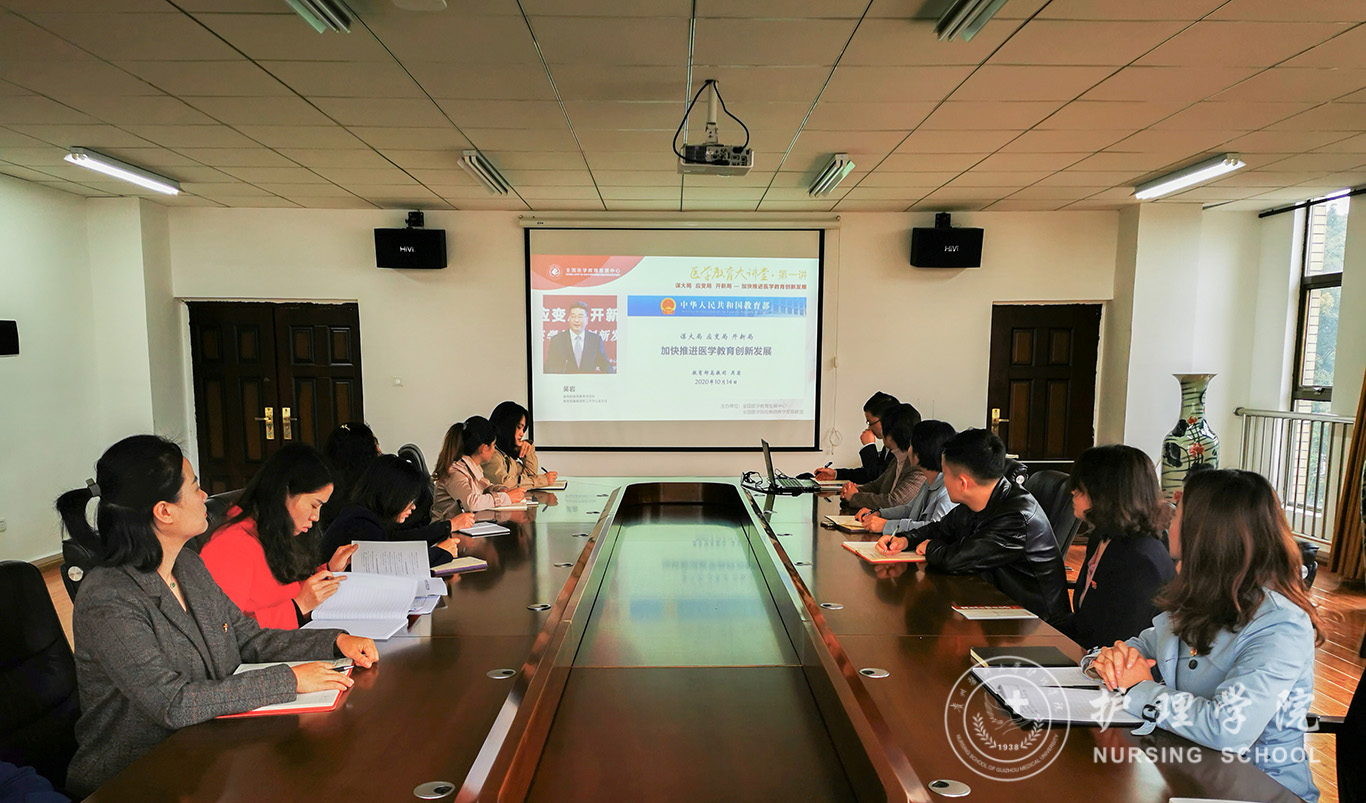 讲座结束后,公司教职工党支部开展了政治理论学习活动,组织教职工党员学习了《中共贵州省委教育工委关于全面推进高等公司“五级书记抓党建”的指导意见》、《习近平谈治国理政》第三卷之四“坚持以人民为中心”、《习近平在全国抗击新冠肺炎疫情表彰大会上的讲话》。活动结束后,杨英对讲座及政治理论学习活动进行了总结,她指出,吴岩司长的报告高屋建瓴、系统全面、内容丰富,有助于我们全面把握和领会国务院办公厅《关于加快医学教育创新发展的指导意见》精神,吴岩司长的报告也指明了当前医学教育的中心任务和改革方向。杨英强调,全体教师党员要以习近平新时代中国特色社会主义思想为指导,弘扬抗疫精神,结合学习内容和岗位实际进行系统思考、深刻领会、贯彻落实,努力为护理教育事业的改革发展和开创医学教育工作新局面作贡献。