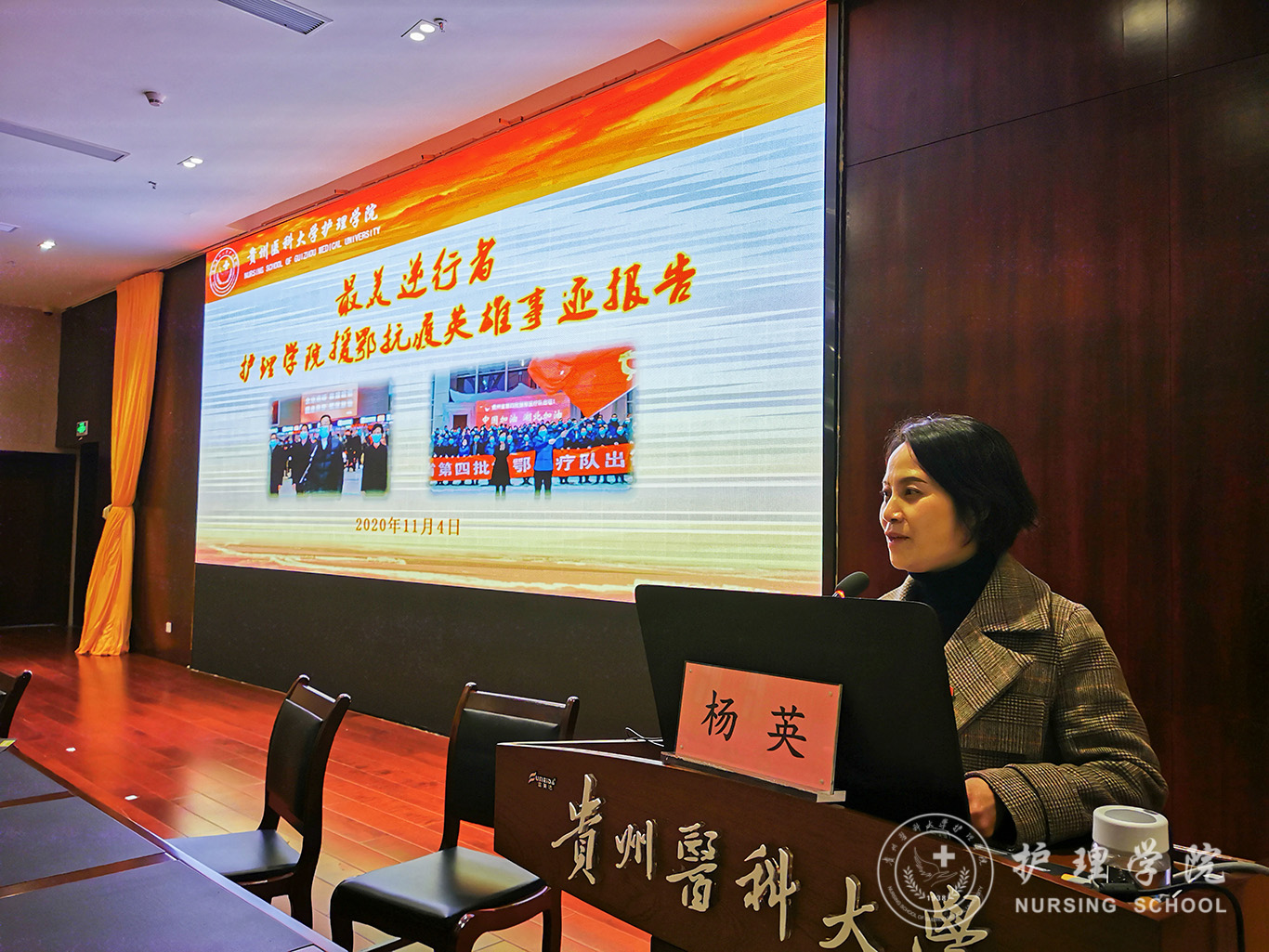 11月4日,为了在全院师生中深入学习和贯彻习近平总书记在全国抗击新冠肺炎疫情表彰大会上的重要讲话精神,也为了弘扬抗疫精神,发挥榜样作用,williamhill中国官网入口在南校区道德讲堂举行了援鄂英雄事迹报告会。会议由公司党委书记杨英主持,williamhill中国官网入口经理、williamhill中国官网入口附属医院护理部主任李亚玲作为援鄂医疗队代表进行主题报告。williamhill中国官网入口全体教师及部分员工代表参会。
