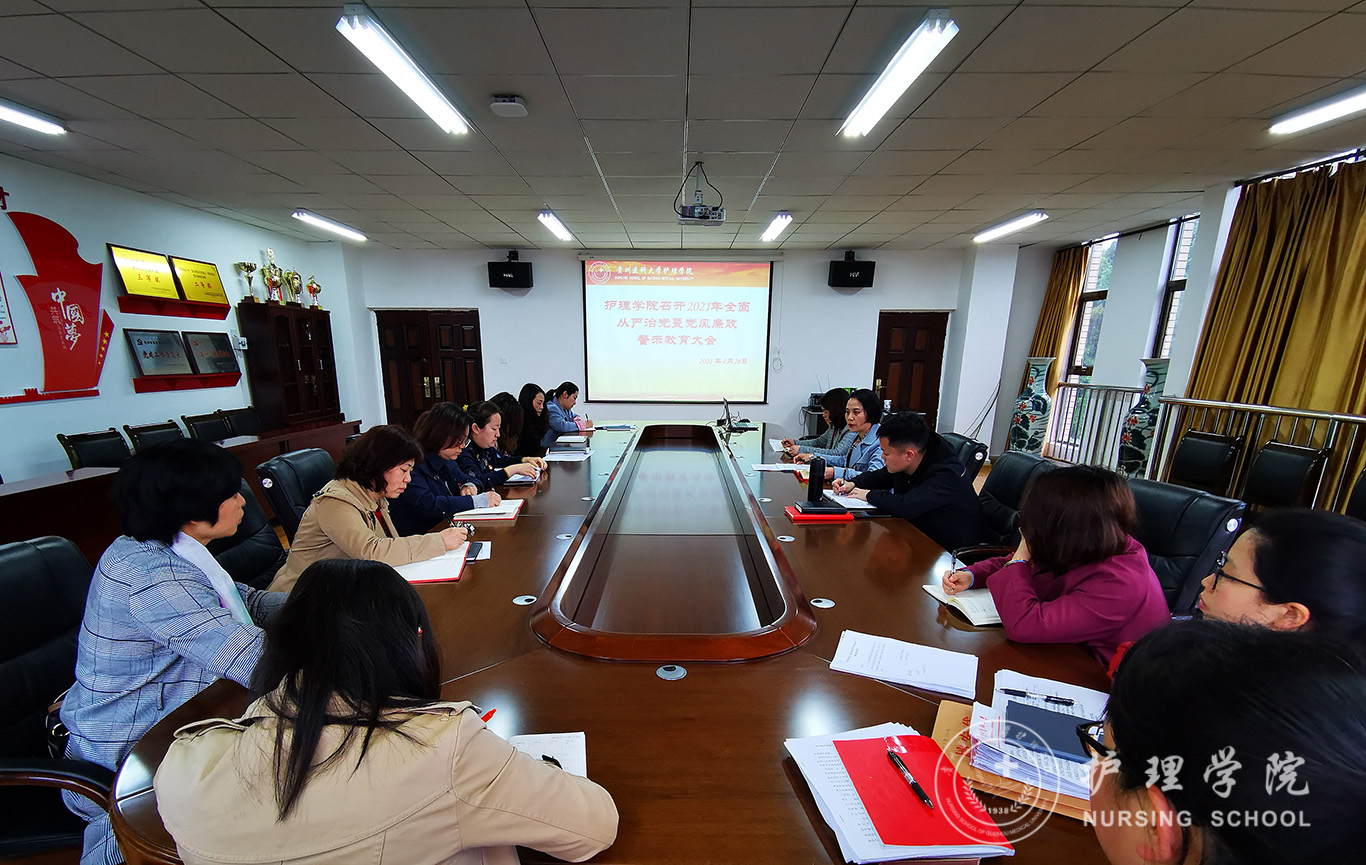 4月28日,为深入贯彻落实十九届中纪委五次全会和十二届省纪委五次全会精神,坚持“严”的主基调,发扬“实”的好作风。williamhill中国官网入口在南校区百川楼五楼会议室召开2021年全面从严治党暨党风廉政警示教育大会。williamhill中国官网入口党委书记杨英、党委副书记何为、副经理刘志燕、副科级以上干部、各党支部书记及全体辅导员参会。杨英主持会议。