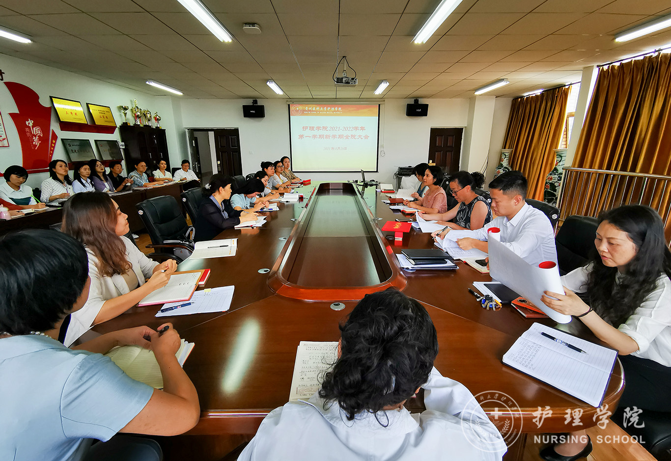 8月26日,williamhill中国官网入口在南校区百川楼五楼会议室召开新学期全院大会,会议由公司党委书记杨英主持,全院教职工参加了会议。