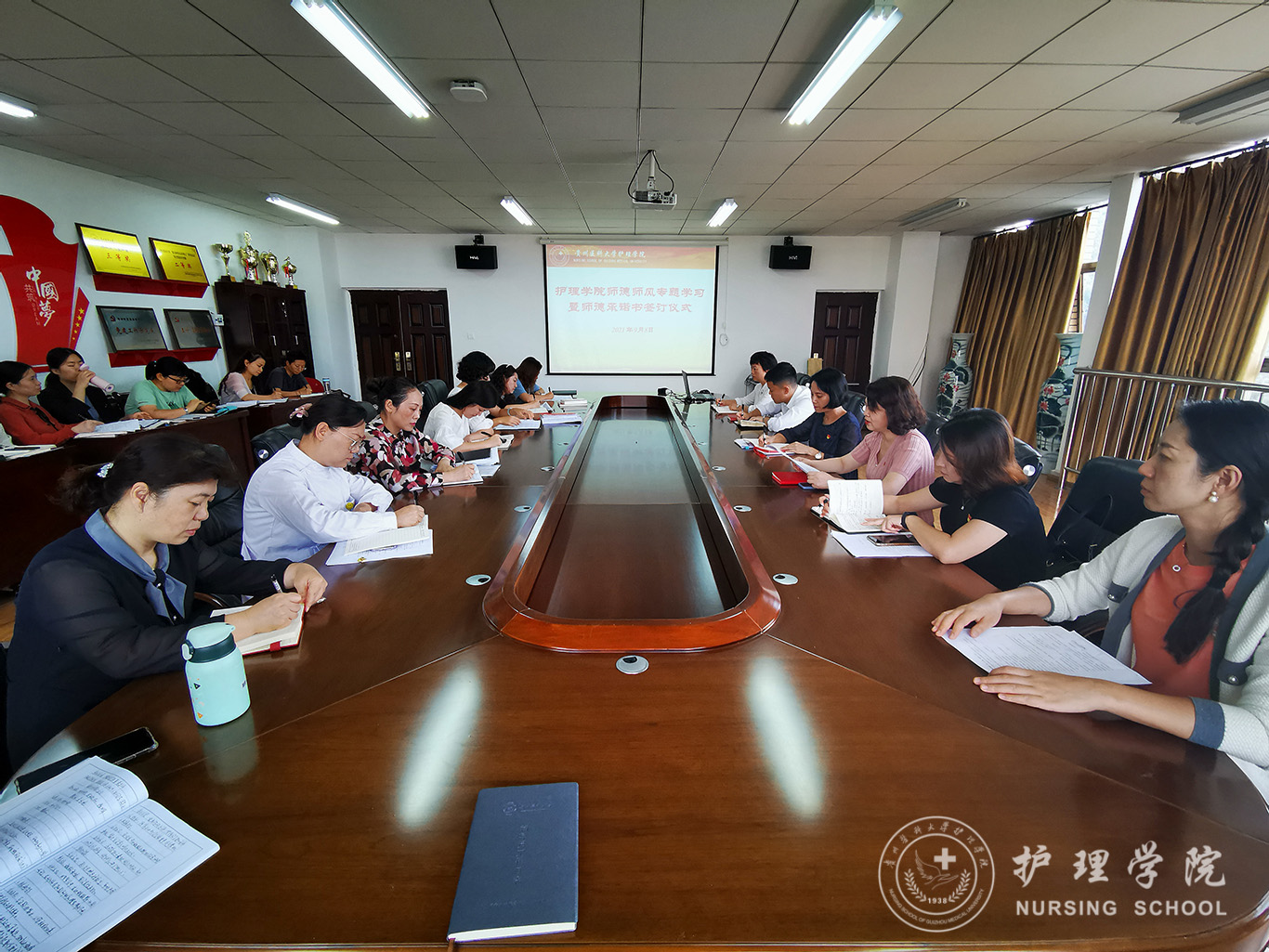 9月8日,williamhill中国官网入口全体教职工,在第37个教师节来临之际,在南校区williamhill中国官网入口5楼会议室开展了师德师风学习专题教育暨师德教育承诺书签订仪式。本次活动由教职工党支部书记张仁莉同志主持。