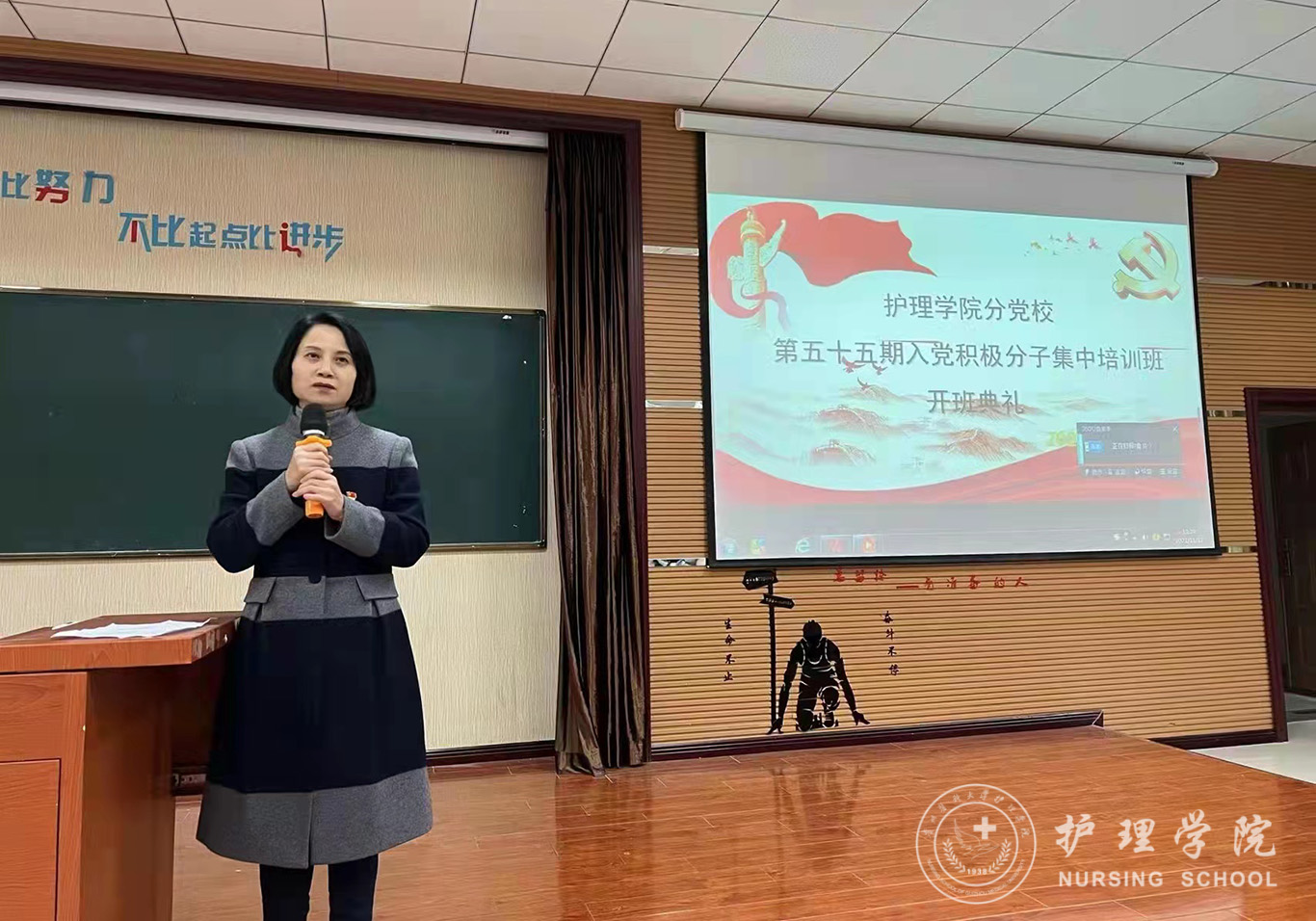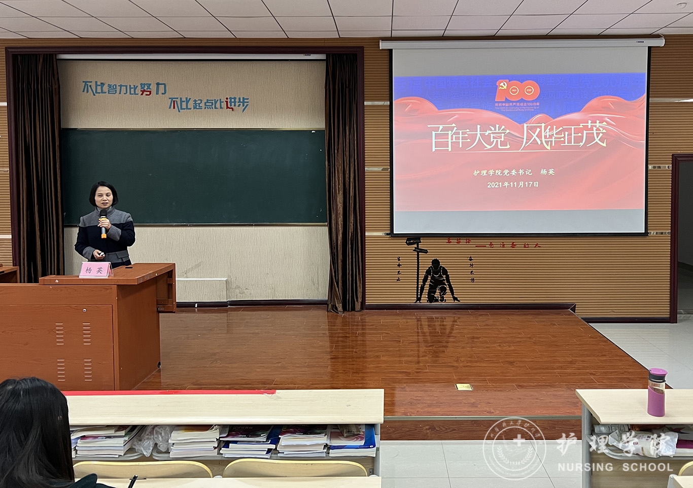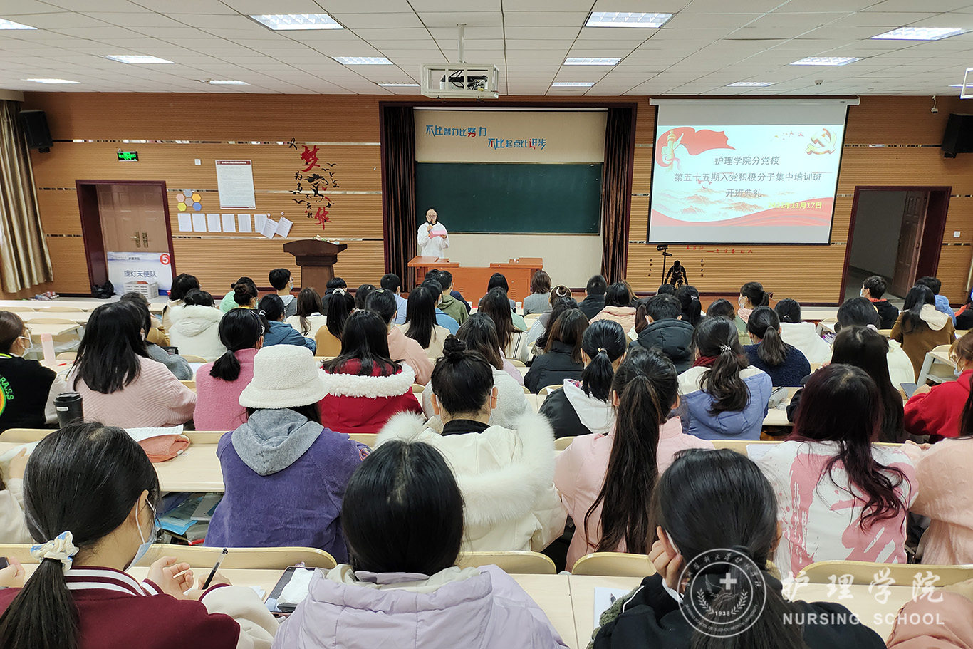 开班典礼圆满结束后,杨英以《百年大党 风华正茂》为题给同学们上了第一堂生动的党课。通过本次学习,同学们对党的百年征程有了更深刻的理解和感悟,纷纷表示将坚定理想信念,勇做走在时代前面的奋进者、开拓者和奉献者。为祖国的繁荣富强贡献一份力量!