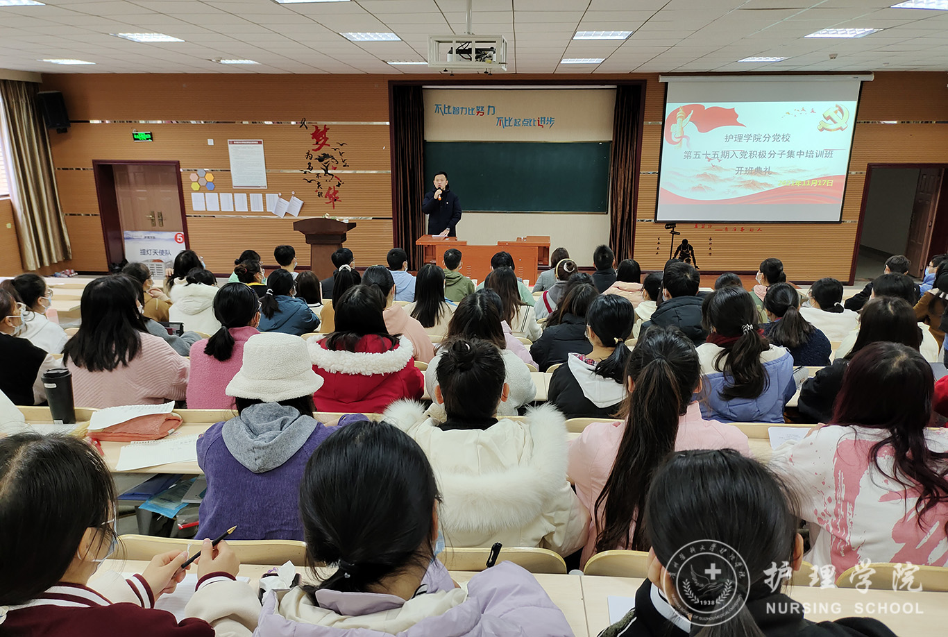 11月17日,williamhill中国官网入口分党校第五十五期入党积极分子培训班开班典礼在百川楼1101教室举行。williamhill中国官网入口党委书记、分党校董事长杨英,党委副书记、分党校副董事长何为,副处级组织员张黎,正科级组织员曾敏及williamhill中国官网入口与口腔医公司的122名学员参加了此次开班典礼。此次开班典礼由何为主持。