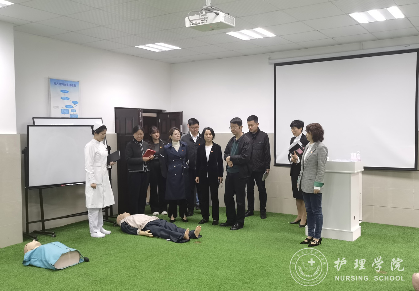 会上,刘文认真听取与会人员提出的问题和困难,积极予以回应,并表示将持续关注后续解决情况。会后,刘文一行实地走访了护理学实验教学中心。