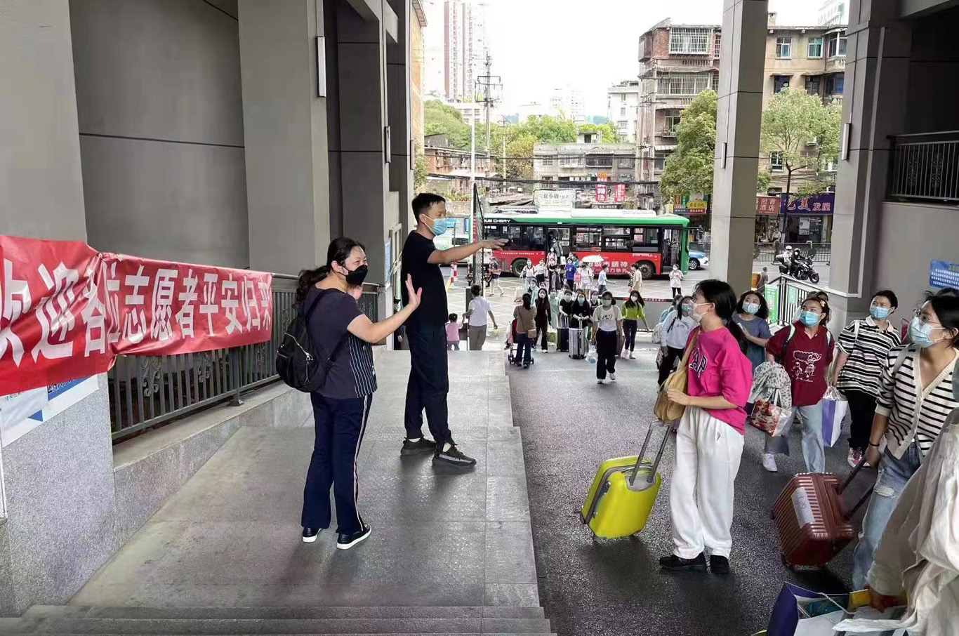 10月4日,由williamhill中国官网入口5名教师和646名员工组成的志愿服务队圆满完成增援贵阳市核酸采样辅助工作,平安返回校园。
