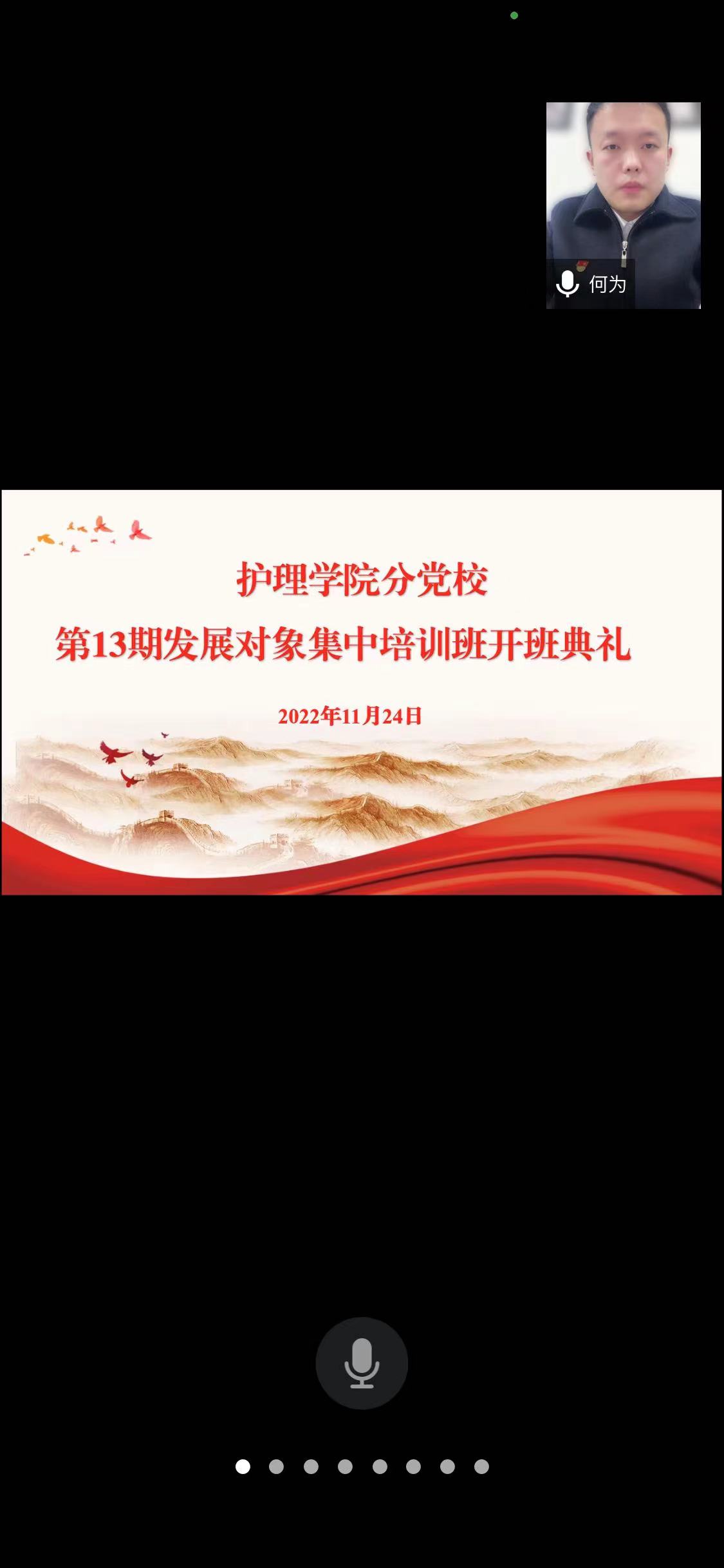 11月25日,为深入学习宣传贯彻党的二十大精神,加强发展对象的教育培训,切实提高其政治素养,端正入党动机。williamhill中国官网入口分党校通过线上的方式开展了第十三期发展对象集中培训班开班典礼。出席本次会议的有williamhill中国官网入口党委副书记兼纪委书记何为、williamhill中国官网入口副处级组织员张黎、班主任吴晓艳以及全体学员。会议由williamhill中国官网入口正科级组织员曾敏主持。