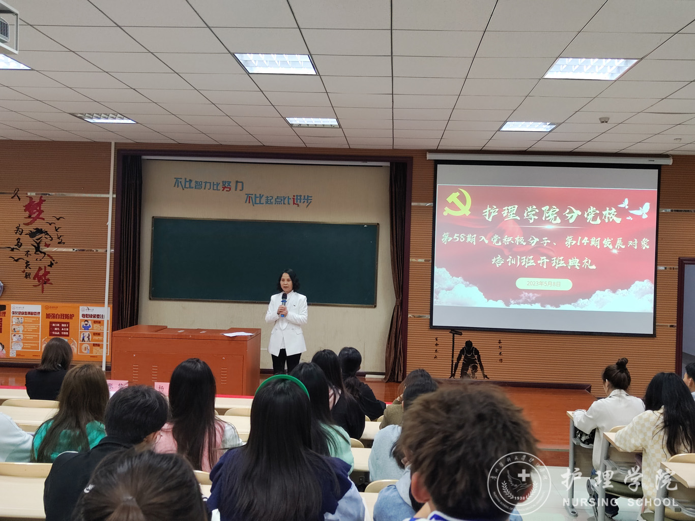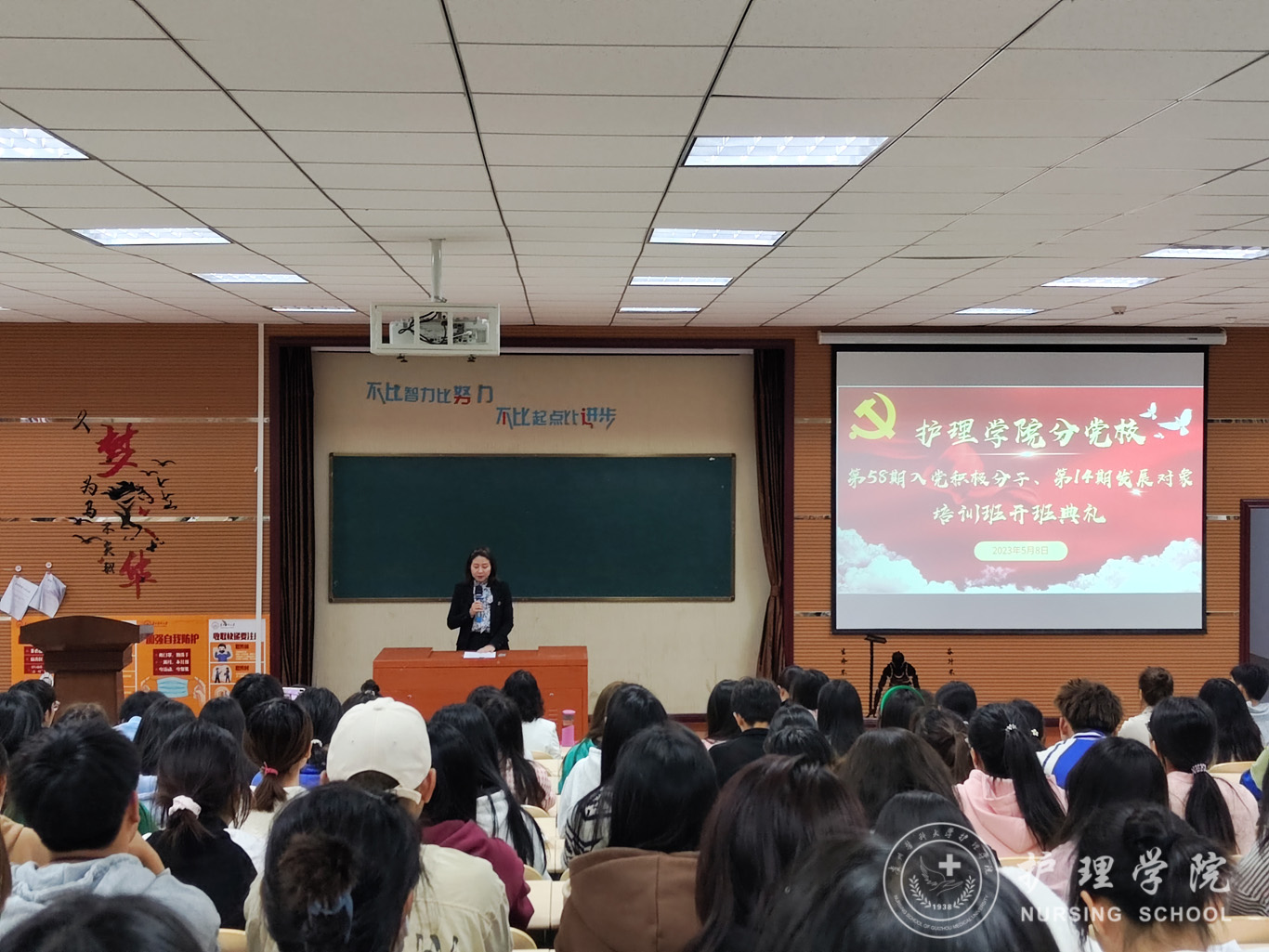 首先由第58期入党积极分子吴追和第14期党员发展对象韦忠微作为学员代表发言,两位学员都表示自己将会更好的提升和完善自己,积极向党组织靠拢,端正入党动机,把自己锻炼成符合党和人民期望的合格社会主义建设者和接班人。随后张黎宣读了学员须知。最后杨英对本次培训班学员提出三点希望:希望学员深入学习贯彻习近平新时代中国特色社会主义思想,端正学习态度,端正入党动机,在学习、工作、生活等方面积极发挥先锋模范作用。