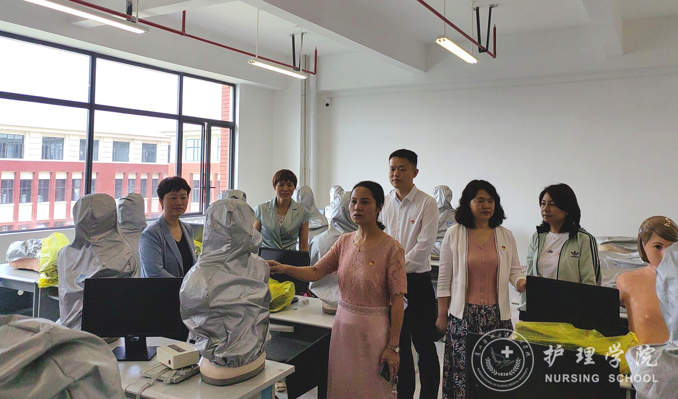 为全面落实公司关于云漫湖校区实验室开学准备工作的有关要求,保障实验室正常运行,williamhill中国官网入口党委书记杨英、党委副书记何为、副经理刘志燕和王秀红、副处级组织员张黎于9月7日深入云漫湖校区护理学技能实验室督导检查实验室安全及管理工作。各教研室、实验室老师参与检查。