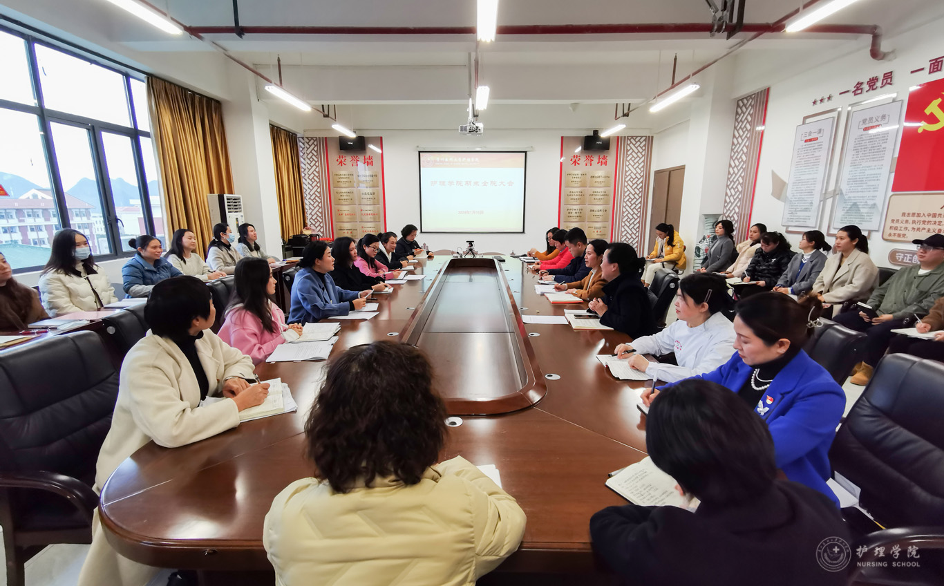1月15日,williamhill中国官网入口在云漫湖校区酬勤楼六楼会议室召开期末全院大会总结部署工作,会议由公司党委书记杨英主持,全体教职工参会。