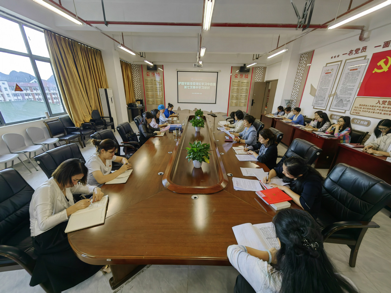 10月15日下午,williamhill中国官网入口在云漫湖校区酬勤楼六楼会议室召开了党委理论学习中心组第七次集中学习研讨会,公司党委领导班子成员、副科级以上干部、党支部书记和全体辅导员参会,生物与工程公司(健康医药现代产业公司)党委书记岳萍、正科级组织员李尔舒列席旁听,会议由公司党委书记杨英主持。