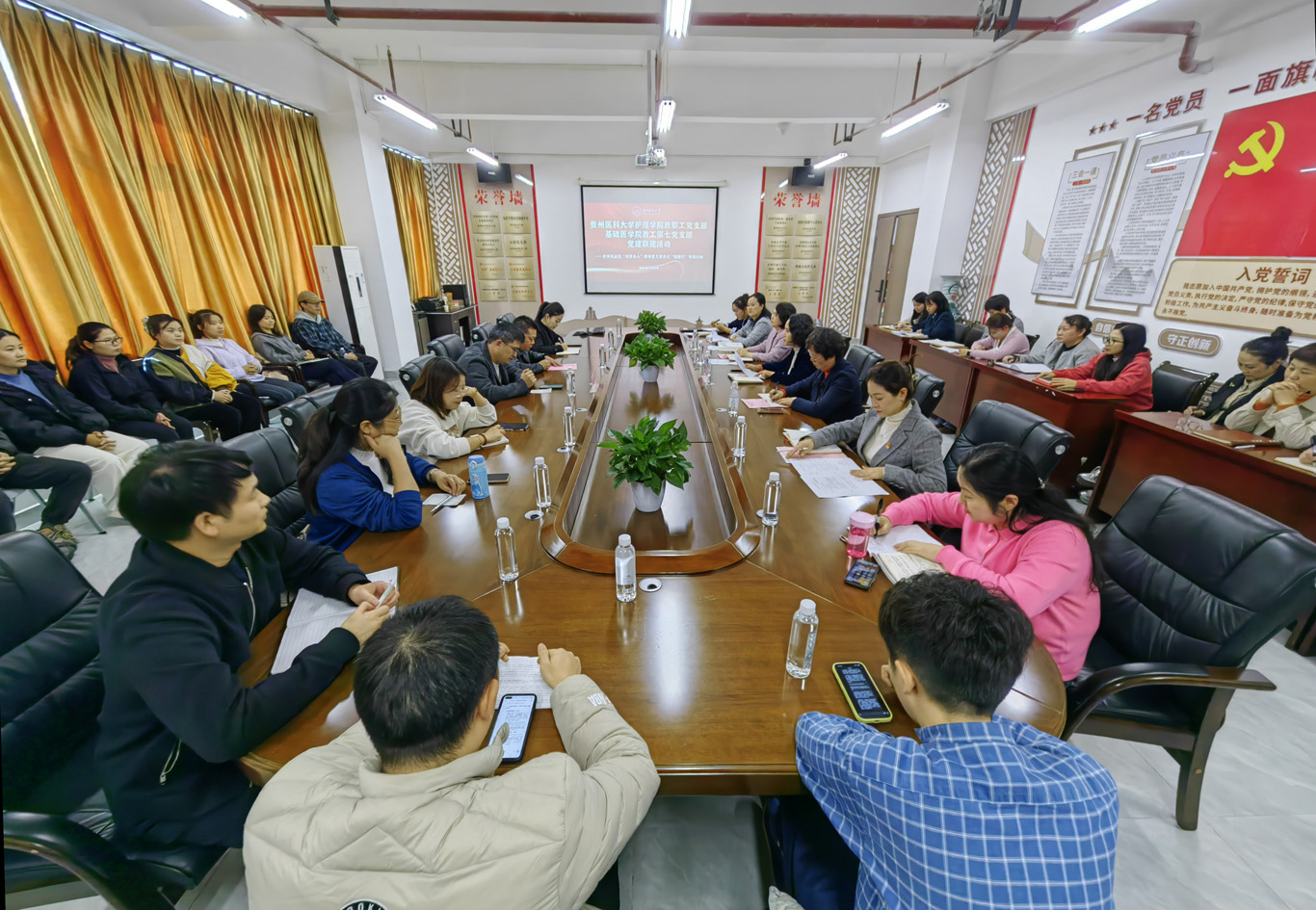 10月22日,公司教职工党支部与基础医公司教职工第七党支部(基础医公司人体解剖学教研室及人体解剖学教学实验中心)在云漫湖校区酬勤楼六楼会议室开展“党建联建聚合力,学科交融启新程”主题党日活动。活动以理论学习为引领、学科交流为纽带,通过支部联建搭建跨学科合作平台,推动党建与团队建设同频共振。活动由公司教职工党支部书记张仁莉主持,基础医公司教职工第七党支部书记孙宝飞率支部党员参会。活动特邀附属医院护理部临床教师代表王军、陆阳,辅导员以及员工代表共同参与。