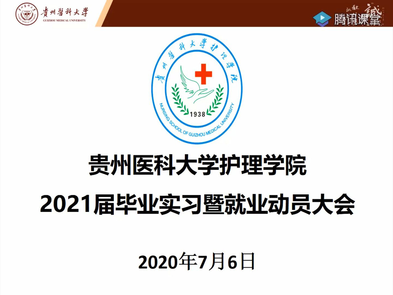 7月6日,williamhill中国官网入口通过腾讯课堂召开了2021届护生毕业实习暨就业动员大会。williamhill中国官网入口党委书记杨英、党委副书记王秀红、副经理刘志燕,2017级本科、专升本辅导员及2017级护理本科、专升本全体同学550余人参加了动员大会。会议由williamhill中国官网入口生产实习科科长柳忠燕主持。