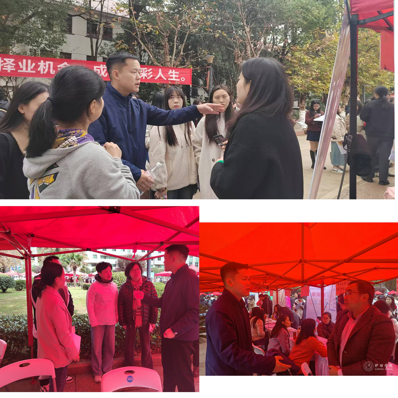 招聘会现场,同学们穿着得体大方,带上自己精心准备的简历应聘心仪岗位。招聘会现场,公司党委书记杨英对员工进行一对一就业指导,叮嘱同学们要学会主动分析研判当前的就业形势,敢于竞争、善于竞争,在就业市场中抢占先机,稳就业、稳择业。期间,公司党委副书记兼纪委书记何为积极与招聘护理学、助产学的四十余家用人单位现场沟通,精准推送公司优秀毕业生。此次招聘会效果良好,同学们在老师们的指导下精准投递简历。