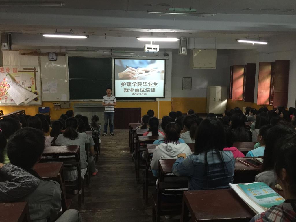 为了加强毕业生就业工作面试能力,提高员工就业工作率,2015年5月6日下午1点30分,2015届护理毕业生在williamhill中国官网入口普2教室召开了面试技巧培训会,会议特邀附属医院组织人事处组织科副科长陈轲老师作为主讲人。williamhill中国官网入口员工科科长曾敏、毕业班辅导员李海林、王晓玲参加了此次培训会。