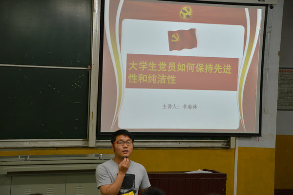 课上,李海林老师讲到毕业后同学们走上工作岗位,要不断加强学习,不断提高政治理论和业务技能,要牢记宗旨意识,树立远大理想,在工作、学习中要做好表率作用。并提出五个方面要求:一是要牢记党的宗旨,永葆党员的先进性,要学以致用回报社会;二是要不断提高个人修养,不断完善自我,提升自我;三是要时刻保持头脑清醒,明辨是非,坦坦荡荡做人,踏踏实实做事;四是要学会坚持,面对困难和坎坷要学会克服;五是要找准自身定位,学会与同事相处,与领导相处,与团队协作。