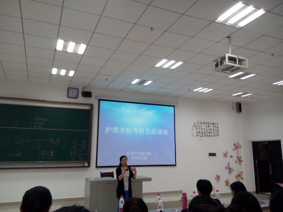 首先,研究生姚欢与同学们分享了考研的路程,并就可能影响在读老员工考研的几个因素作了详细讲述。研究生王先美则着重从护理专业的就业状况、考研科目、能否跨专业考研等方面展开讲述,为同学们讲述了目前贵州省医院招收护理人员的标准,指出研究生与本科生在工作上有一定差距。接着,研究生曾雯结合自己考研学习的经验与在场的同学进行了交流,她用自己的经历告诉同学们在学习中要给自己树立目标,在面试中勇于把自己的闪光点表现出来,给自己加分。最后,同学们积极就自己在考研方面存在的困惑提出疑问,研究生师姐热情与同学们进行交流,一一解答了同学们的疑惑。此次考研交流讲座在热烈的掌声中圆满结束。