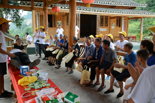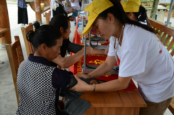 到达目的地后,同学们热情的为村民免费测量血压、发放药品、提供医疗咨询、宣讲健康知识,并就乡情民情做了调查问卷,了解当地村民的生活现状和困难。之后,同学们还主动为当地村民表演了一场精彩的节目,节目由欢快的舞蹈、独唱和大合唱组成,受到了当地村民热烈欢迎。晚上,师生们总结了一天的活动内容后,克服艰苦的条件,自带铺盖住宿在村委会小屋内。7月15日上午,同学们又热心地为当地村民讲解了一些地方病、常见病的预防诊治及健康保健知识,并对当地村民进行溺水急救、心肺复苏培训,并邀请村民参与体验。最后还深入到农户家中,将准备好的小礼品和文具赠送给乡亲和留守儿童。这一系列活动都得到了当地村民的一致好评。