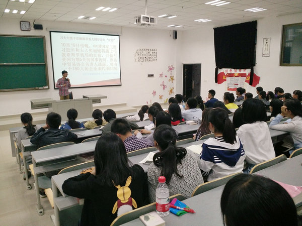 10月22日下午17:30,williamhill中国官网入口员工会在4106教室召开10月份例会暨政治理论、团课学习。员工会全体成员参加了此次会议。