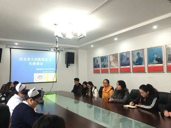 2016年1月26、27日,williamhill中国官网入口党委副书记杨英、毕业班辅导员王晓玲赴兴义市人民医院看望实习同学,并会同医院分管领导和临床带教老师与实习生召开了座谈会。
