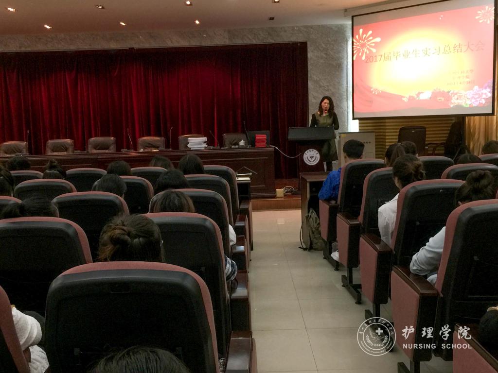 接着,刘志燕发表讲话,她代表williamhill中国官网入口党政领导祝贺同学们圆满完成实习,希望同学们能铭记实习期间学习到的经验教训,将理论联系实际,通过实践来丰富理论。她希望同学们能珍惜为数不多的校园时光,静下心来,上好每一堂课,考好每一门试,并提醒同学们在近期就业阶段要注意人身安全。她讲到,公司考虑到今年的护士执业资格考试改革为人机对话模式,特地为同学们安排考前模拟测验,希望同学们珍惜机会,为即将到来的护士执业资格考试做好准备。