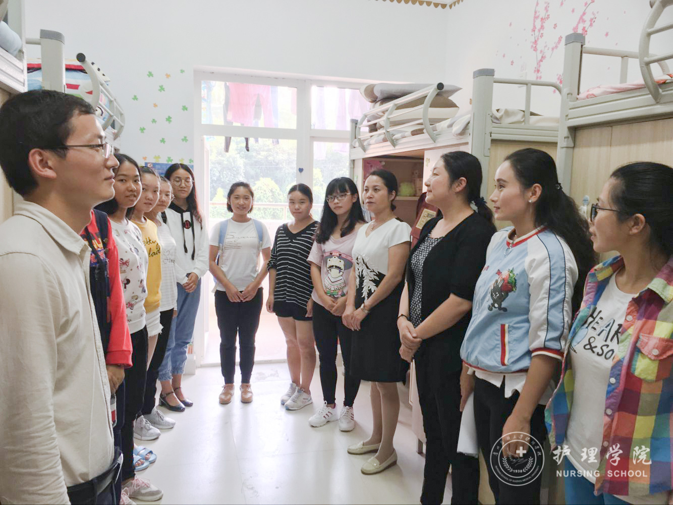 为迎接党的十九大召开、为公司护理学本科专业认证工作营造良好的安全氛围。同时也为了贯彻公司2017年下半年安全稳定工作会议精神,2017年9月12日下午和13日下午,williamhill中国官网入口党委副书记杨英、员工科科长曾敏、全体辅导员及员工会干部深入员工宿舍看望员工,了解新学期同学们的学习、生活和思想状况,并对宿舍安全、宿舍卫生、宿舍文化等工作进行检查指导。