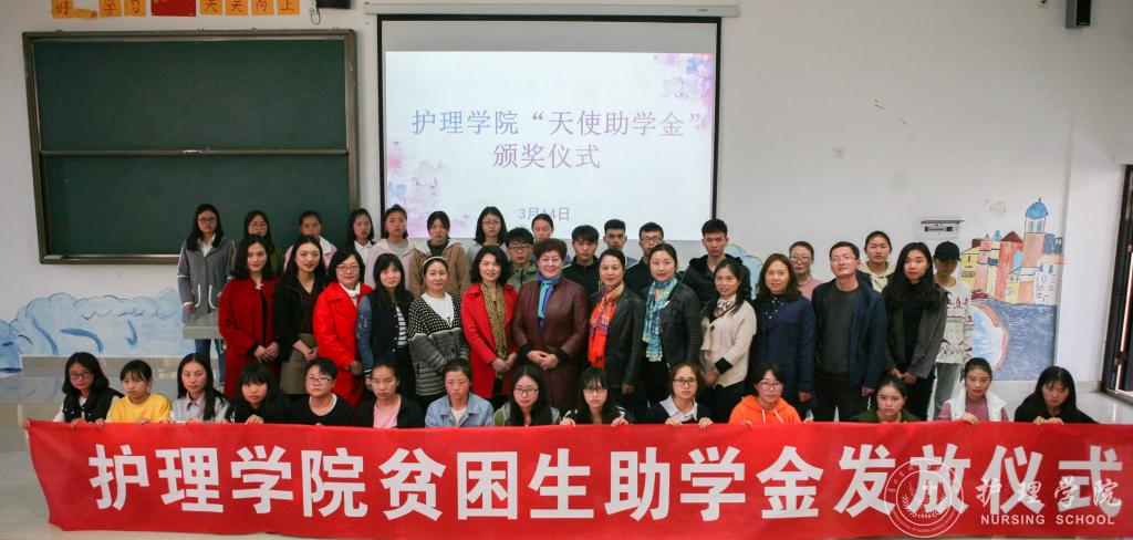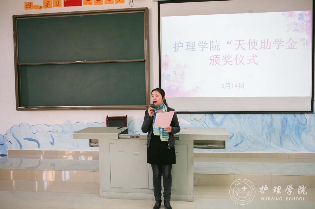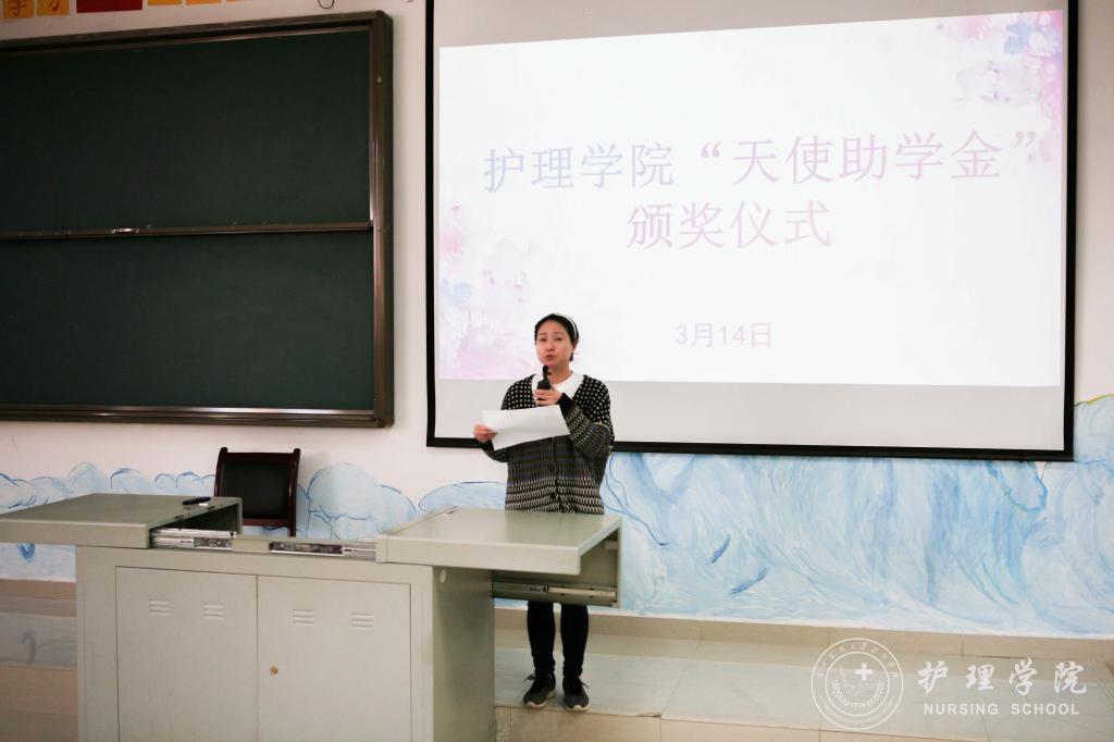 首先,员工科科长曾敏介绍了“天使助学金”的由来,并转达了“天使助学金”主要资助人浙江大学附属邵逸夫医院,从事护理工作25年的秦建芬老师对同学们的期望:“护理工作是助人的工作,一位好的护士,对患者而言,就是好的药物,所以尽自己的这一点绵薄之力,能够对同行的兄弟姐妹们的学业生活有所帮助,希望同学们能够更好地为患者提供照护。”接着,williamhill中国官网入口综合办主任张黎宣读了williamhill中国官网入口“天使助学金”的受助名单。张黎鼓励同学们要心怀感恩、努力学习、乐观生活,以优异的成绩来回报师长和秦女士的关心与帮助。最后,2017级护理学乙班同学黄虹久代表受助同学发言,向关心和帮助困难同学的秦女士和领导、老师表示崇高的敬意和衷心的感谢。她代表受助同学承诺:要牢记校训、院训,学好专业知识,增强实践能力,提高道德修养,为成为一名优秀的白衣天使打下坚实基础,争取在以后的工作中更好地服务人民、回报社会。