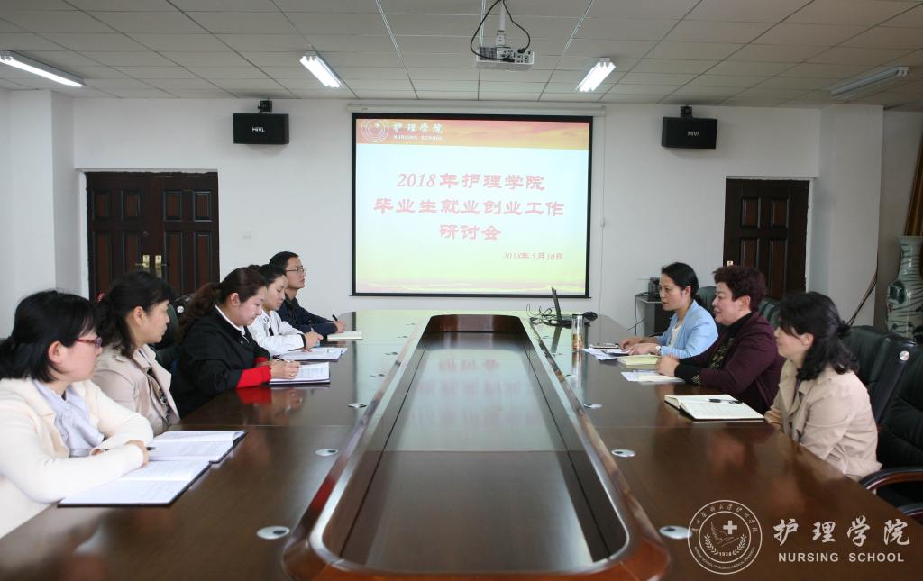为进一步做好williamhill中国官网入口就业创业工作,5月10日下午3点,williamhill中国官网入口在南校区会议室召开2018年毕业生就业创业工作研讨会。williamhill中国官网入口经理贾秀英、党委副书记杨英、副经理刘志燕、综合办公室主任张黎、员工科长曾敏、内科教研室副主任宴家芳以及毕业班辅导员参加了本次会议。