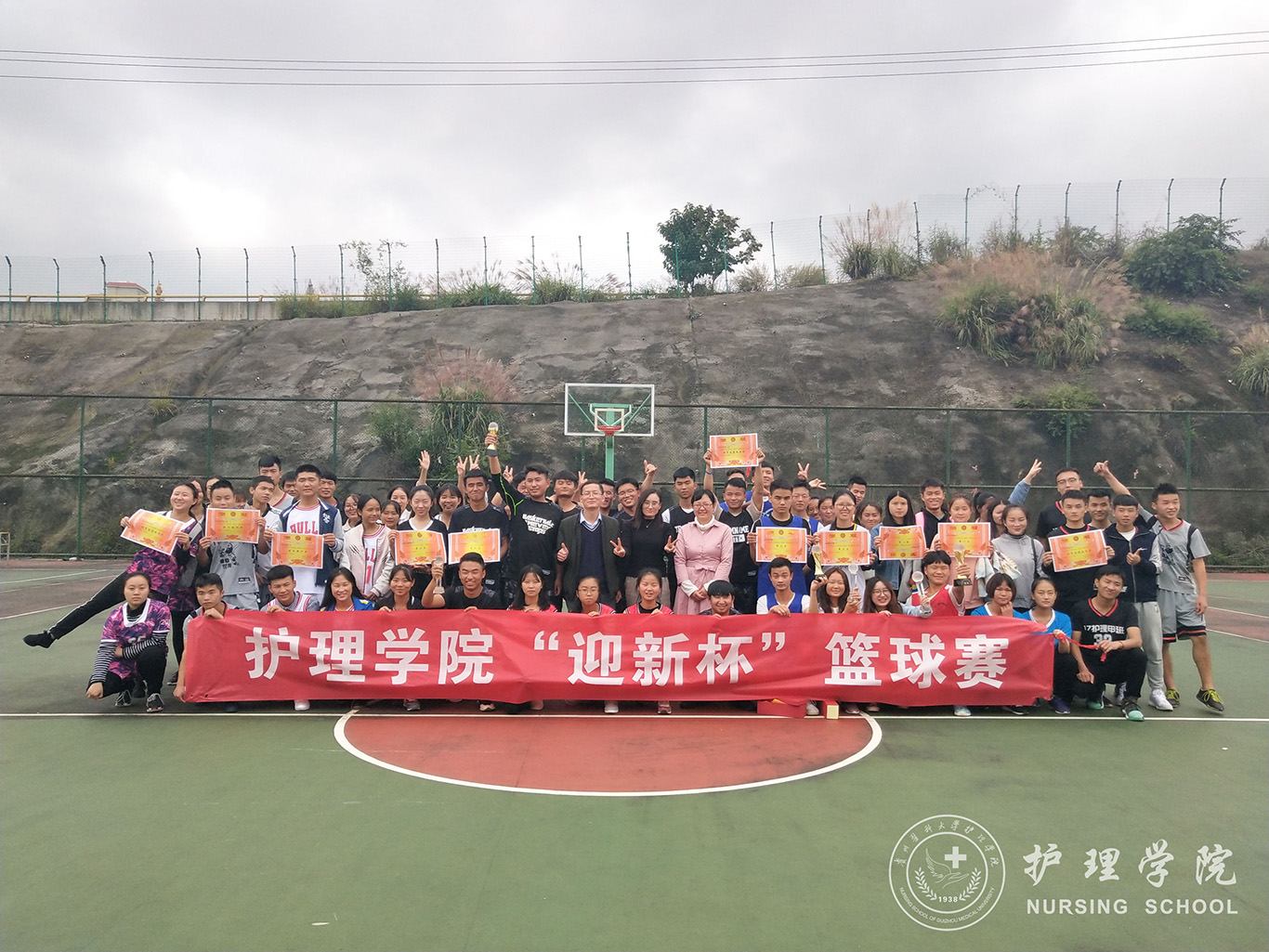 闭幕式上,主持人宣布了本次“迎新杯”篮球赛的获奖班级:2018级护理学甲班包揽了男、女组第三名;2018级护理学丙班包揽男、女组第二名;2017级护理丙班包揽了男、女组第一名。三位老师分别对获奖队伍进行颁奖并合影留恋。接着,马景瑶老师致闭幕词,他希望同学们能通过篮球赛去强身健体,让锻炼成为一种习惯;同时通过这样的方式去和他人交流,增进同学们之间的感情和友谊,增强彼此的联系。最后,王晓玲老师对此次篮球赛做出总结:一是赛场上的每一位队员都拼尽全力,努力为班级争光,在接下来的生活学习中要继续发扬这种团结奋进、永不放弃的的精神;二是表扬了员工会成员和各班班委对每一位参赛选手的精心照顾,希望员工干部们能在接下来的工作中更加用心和负责;三是永远记住自己是一名未来的医护人员,要保证自己有好的健康体魄,还要在各方面不断提升自己,为公司增光添彩。