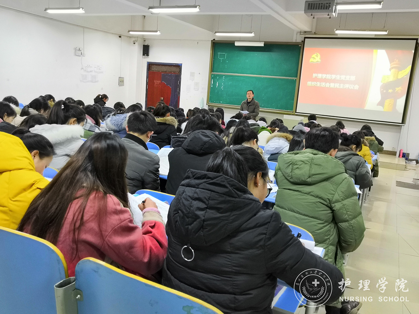 首先,李颖同志宣读了《关于召开2018年度基层党组织组织生活会和开展民主评议党员工作的通知》(贵医党通〔2019〕3号),带领党员同学们学习了组织生活会和民主评议党员相关文件的主要精神。接着,在李颖、马景瑶、王洁、花梓瑄、金廷廷等五名支委的带领下,全体党员进行了自我评议。回顾2018年的工作、学习和生活,指出工作中的不足并虚心接受支部内所有党员的批评与指正。最后,大会对党员进行民主测评。