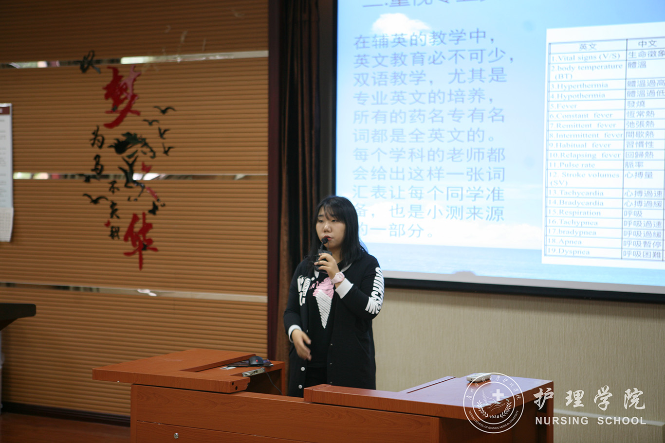 会上,周婷婷和戴雨曦分别给同学们分享了各自在台湾辅英科技大学交流学习的经历与感受。两位同学从学习氛围对自身学习习惯的影响、辅英的教学方式、公司师生对交流同学的关爱、参加社区义工活动、生活条件、经济支出等方面进行了讲述。生动真切的分享激发了在座同学对对外交流的了解和向往。