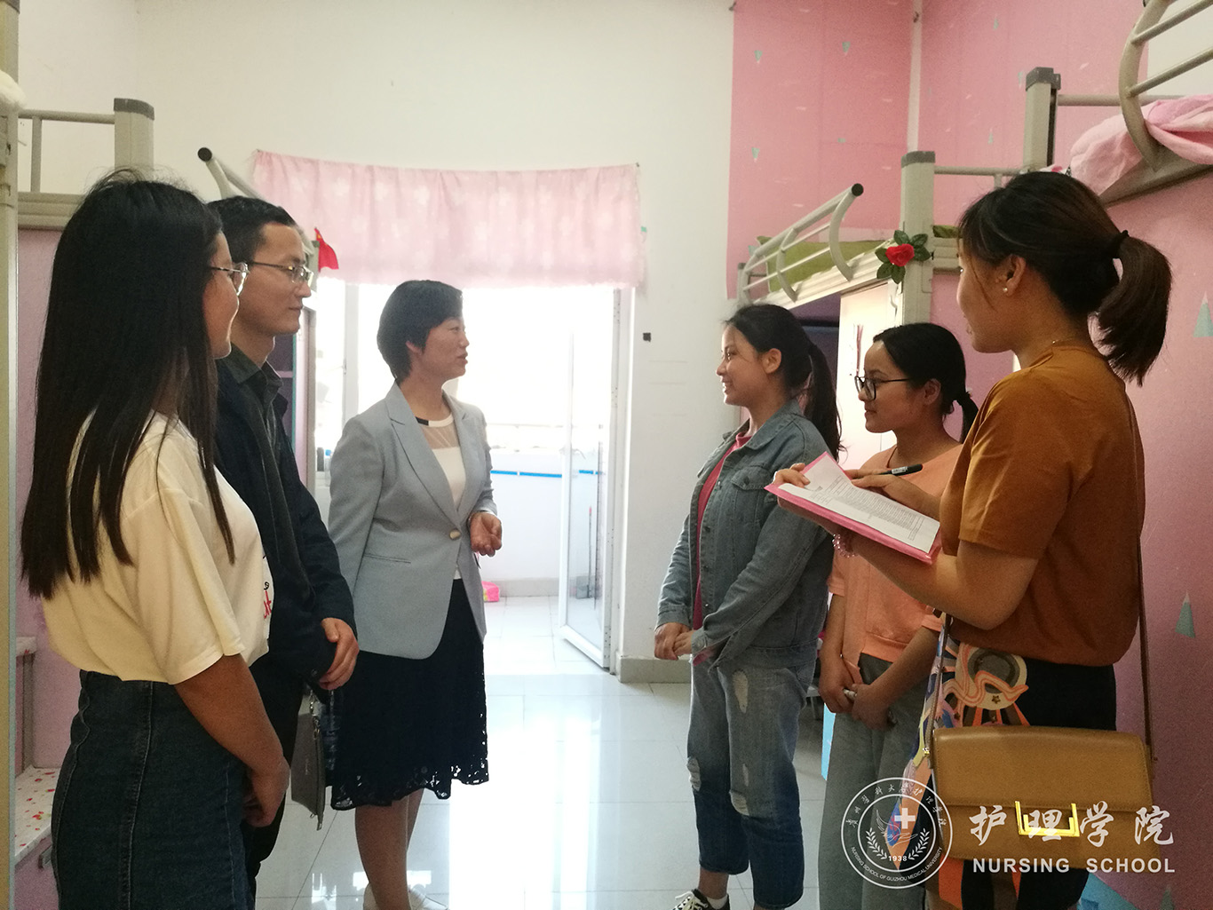 为做好员工寝室的安全卫生工作,消除安全隐患,创建良好的学习生活环境。5月29日至6月3日,williamhill中国官网入口经理贾秀英、党委副书记王秀红带队,组织全体辅导员、部分员工干部对全院南北校区员工寝室进行了安全卫生大检查。