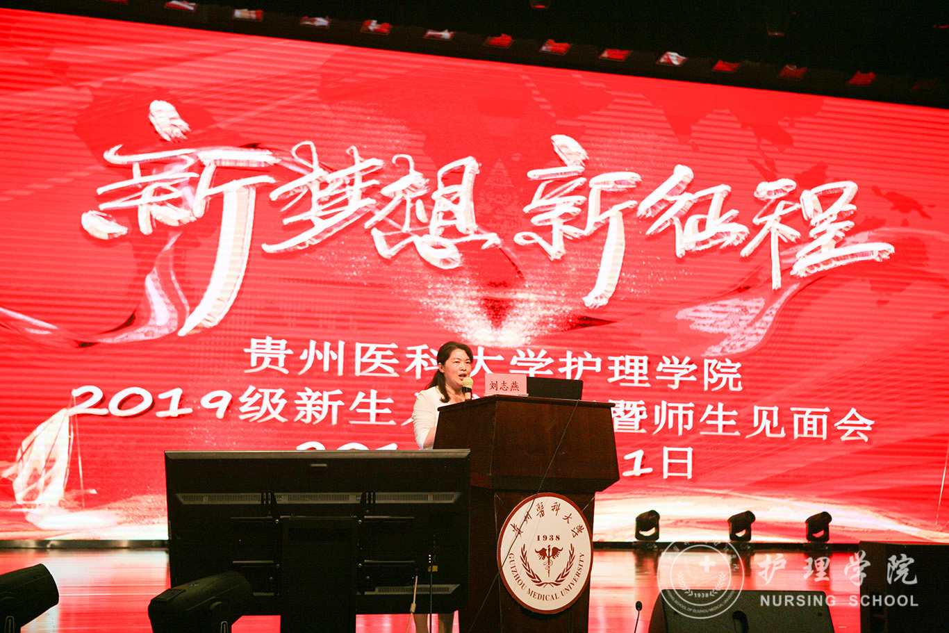 刘志燕和2019级新生分享了关于护理学的专业知识,从护理学的内涵,护理学的专业培养目标、能力要求、知识要求等方面对新生进行专业思想教育,使新生对护理学专业有了基本的了解,对大学四年的专业学习有了初步的认知与规划。而后,2019级护理学甲班同学熊思洋作为新生代表发言,表达了对专业学习的追求、对老员工活的期盼。