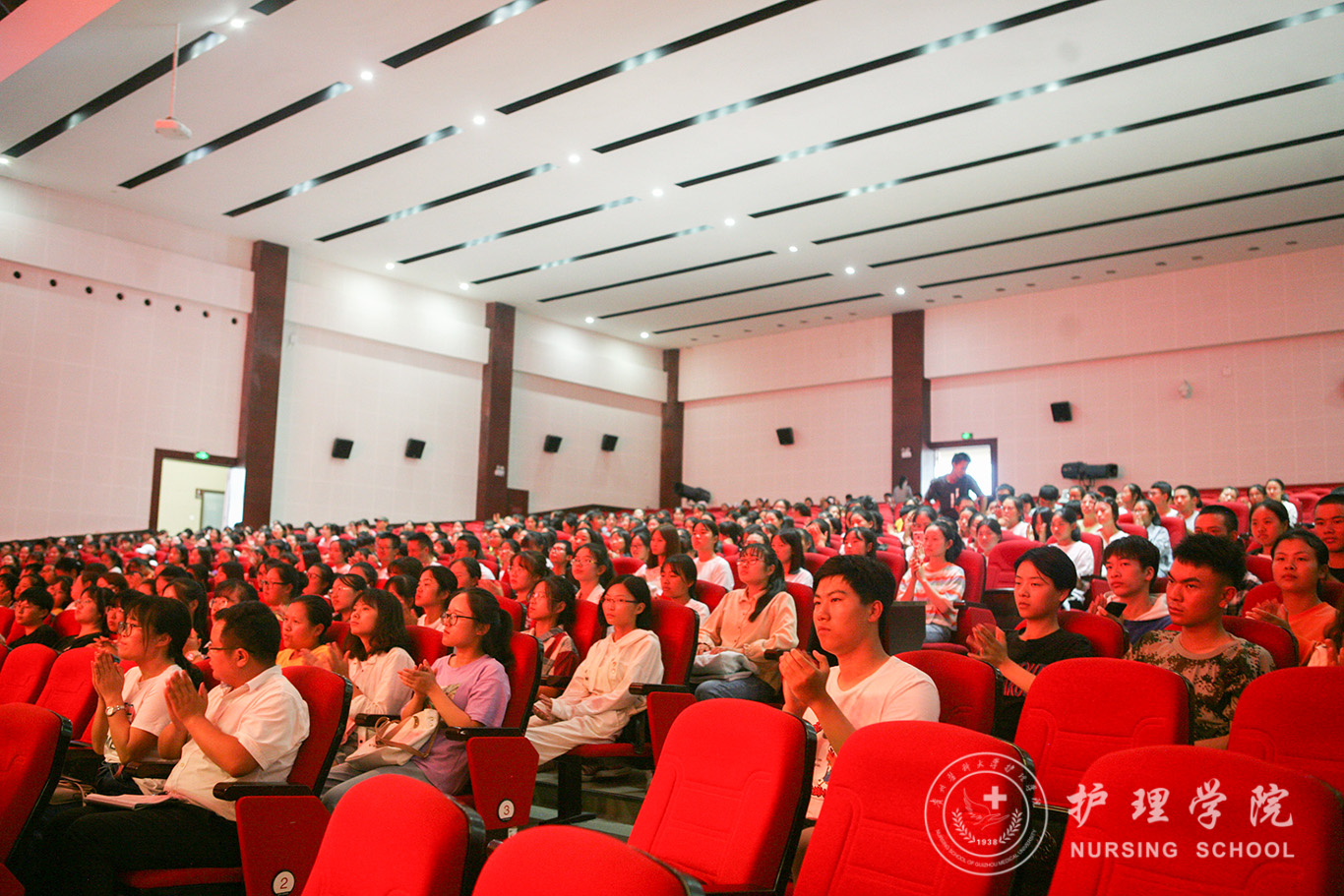 接下来,杨英以四个问题为切入点,为新生详细阐述了护理的定义、南丁格尔精神的传承、医护区别和老员工生涯规划。杨英为新生介绍了护理学的奠基人-弗罗伦斯·南丁格尔,在南丁格尔的事迹中引导新生如何更好的适应并做好一名“医员工”的老员工活,并以贵州省南丁格尔奖章获得者苏雅香为例,强调了护理工作的重要性与光荣性,鼓励同学们认真学习,传承和发扬榜样的精神。同时,希望2019级新同学们努力学习、锻炼身体和养成良好的学习生活习惯,对此,杨书记向同学们提出“多读书,树立远大理想,做好人生规划”的要求与希望。