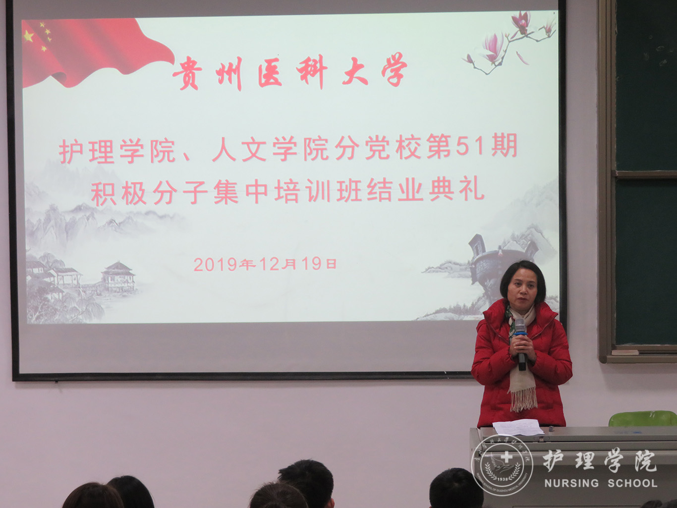 12月19日,williamhill中国官网入口、医学人文公司分党校第51期入党积极分子集中培训班结业典礼在南校区广德楼1301教室举行。williamhill中国官网入口党委书记杨英、副书记王秀红、本期培训班班主任曾敏及全体学员参加了典礼,典礼由王秀红主持。