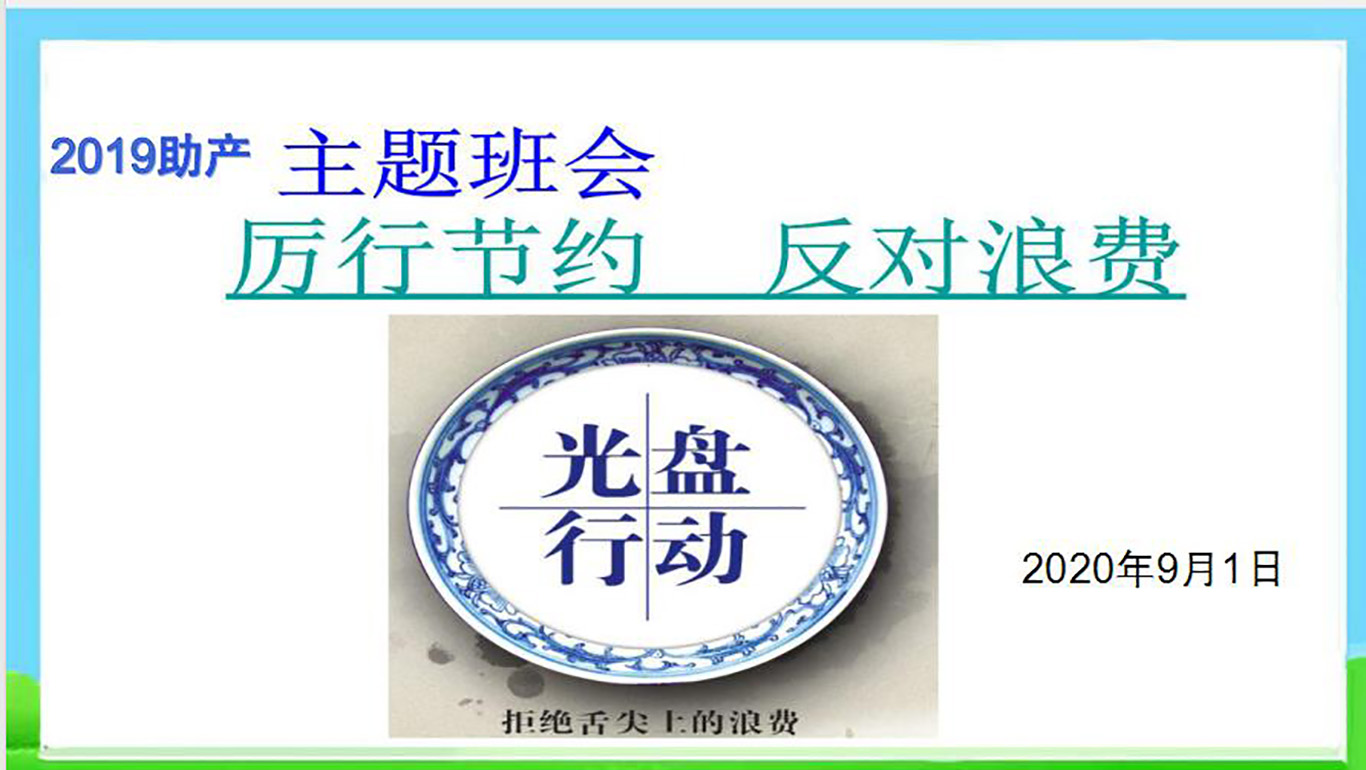 为了学习贯彻习近平总书记关于厉行节约的重要指示精神,2020年9月1日williamhill中国官网入口助产学2019级在广德楼1602教室召开“厉行节俭,反对浪费”的主题班会,本次班会由辅导员曾敏组织,助产学2019级全体同学参加。