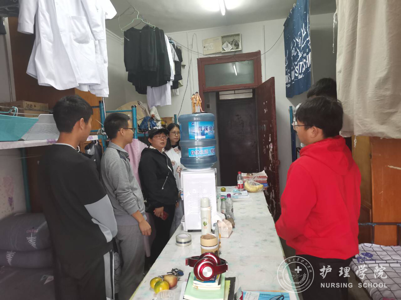 辅导员带领各班的班干对班级的宿舍进行了安全大排查,此次主要对寝室的整洁程度、通风情况及用电安全进行了检查。辅导员提醒大家:第一、疫情期间,务必保持寝室通风和卫生洁净,勤洗衣服,勤换床单被罩;第二、安全用电,禁止在寝室使用违章电器,并对违章电器的类型以及违规电器使用带来的不良后果进行了讲解,叮嘱大家一定遵守公司的宿舍管理规定;第三、注意寝室安全,随手关门,离开宿舍之前关闭水电和门窗,贵重物品谨慎妥善保管;第四、保持良好的卫生习惯,禁止在宿舍走廊摆放垃圾袋。