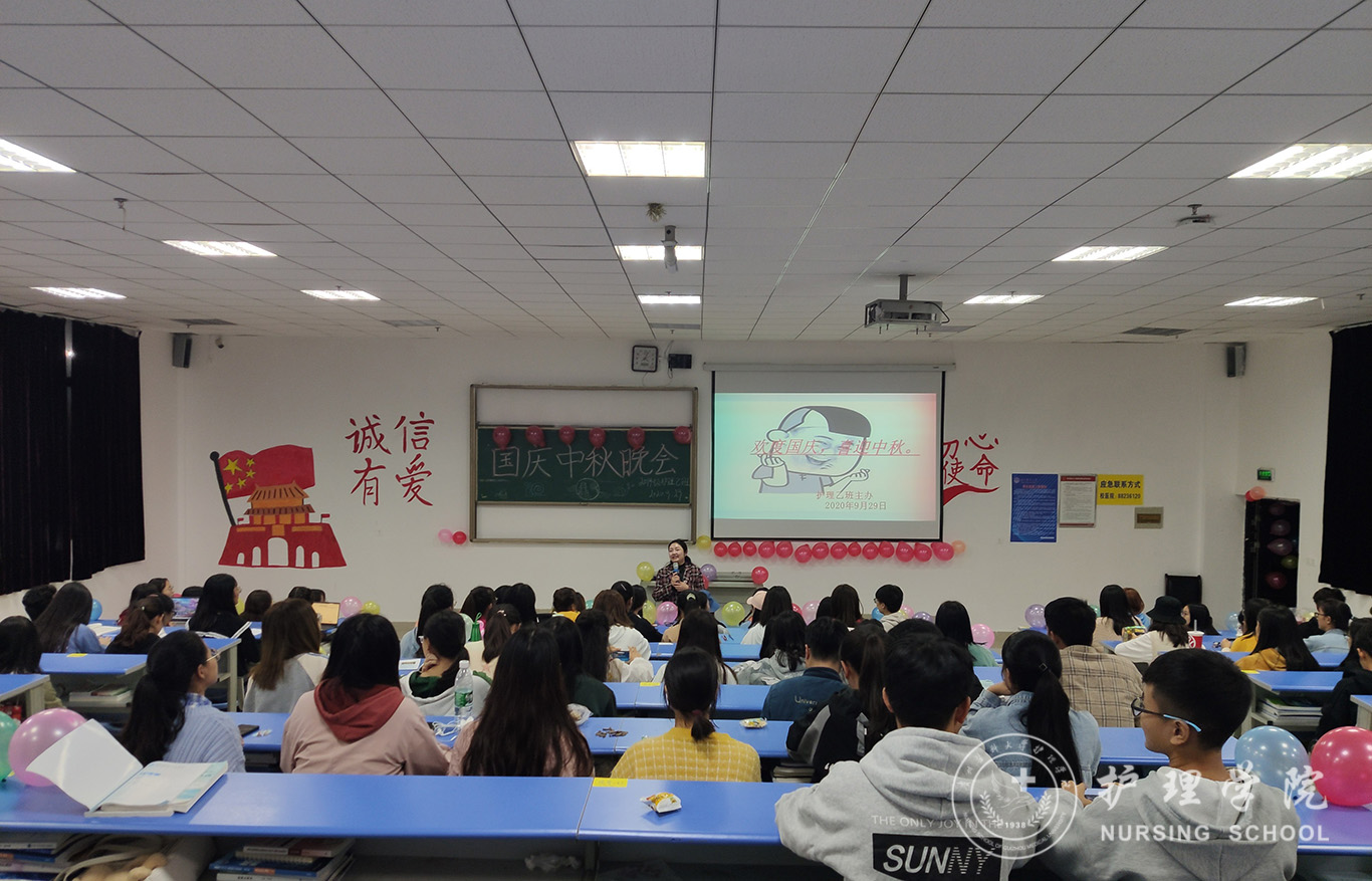 为迎接中华人民共和国成立71周年,喜庆中秋佳节,进一步丰富同学们的文化生活,9月29日晚,williamhill中国官网入口助产学2019级、护理学甲、乙、丙班在各班教室举办了“情满中秋欢度国庆”文艺晚会,辅导员曾敏、杨叶卿,班主任老师以及全体同学欢聚一堂共庆佳节。