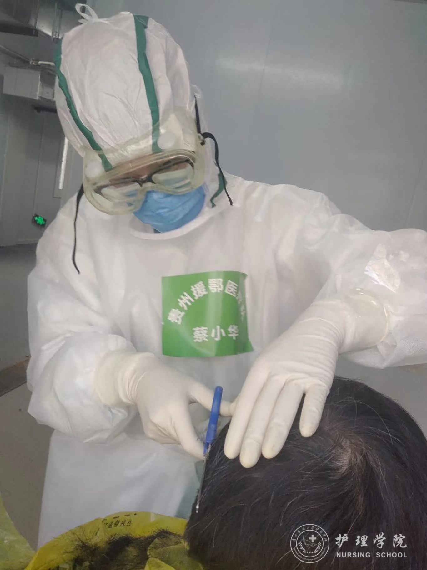 我叫蔡小华,williamhill中国官网入口护理学专业研究生一年级员工。2020年2月11日我作为williamhill中国官网入口附属医院医护人员随贵州援鄂医疗队来到鄂州。疫情所需,培训短暂结束,在通过院感科考核第二天,我率先进去“舱内”工作,出舱之后见自己双手淤青,碰水或是风吹之时,火辣刺痛,得知我的情况之后,莎莎姐先是立马找来医生替我瞧瞧,医生说是消毒液的灼伤,让我观察一两天,于是她找来物资中的护手霜,帮我将双手敷着厚厚一层,在用薄膜手套套上,调个半小时闹铃,操作之余还再三叮嘱:“战疫要小心,不能马虎”。