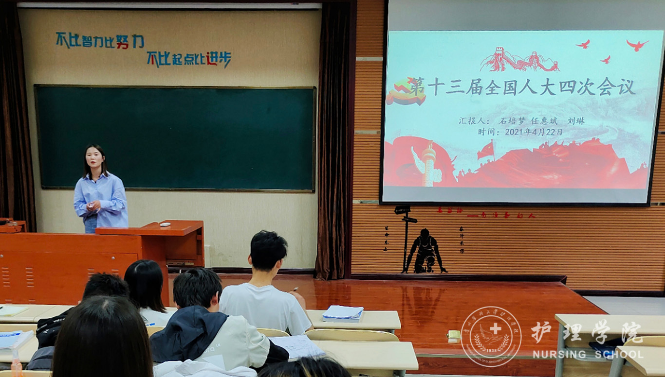 本次会议共分为四项议程。第一项,由文体部主持了第十三届全国人大四次会议相关政治理论学习。提出在全面建设社会主义现代化国家新征程上,我们要更加紧密地团结在以习近平同志为核心的党中央周围,增强“四个意识”、坚定“四个自信”、做到“两个维护”,把宪法法律赋予的职责履行好,以优异成绩庆祝中国共产党成立100周年,为实现中华民族伟大复兴中国梦不懈奋斗!第二项,各部门对第四十届校运会中的工作内容、工作方法、工作总结等做出汇报。第三项,由副主席罗茂龙对五月护士节授帽仪式,五四主题团日活动等做工作安排。并提出员工会与各班级之间应增进沟通交流,以便更好的为同学服务。第四项,刘妍老师做总结,她肯定了大家在运动会中的辛勤付出,同时也要求同学们要在经验教训中学会成长,努力成为一个有思想、有作为、有修养的员工干部。