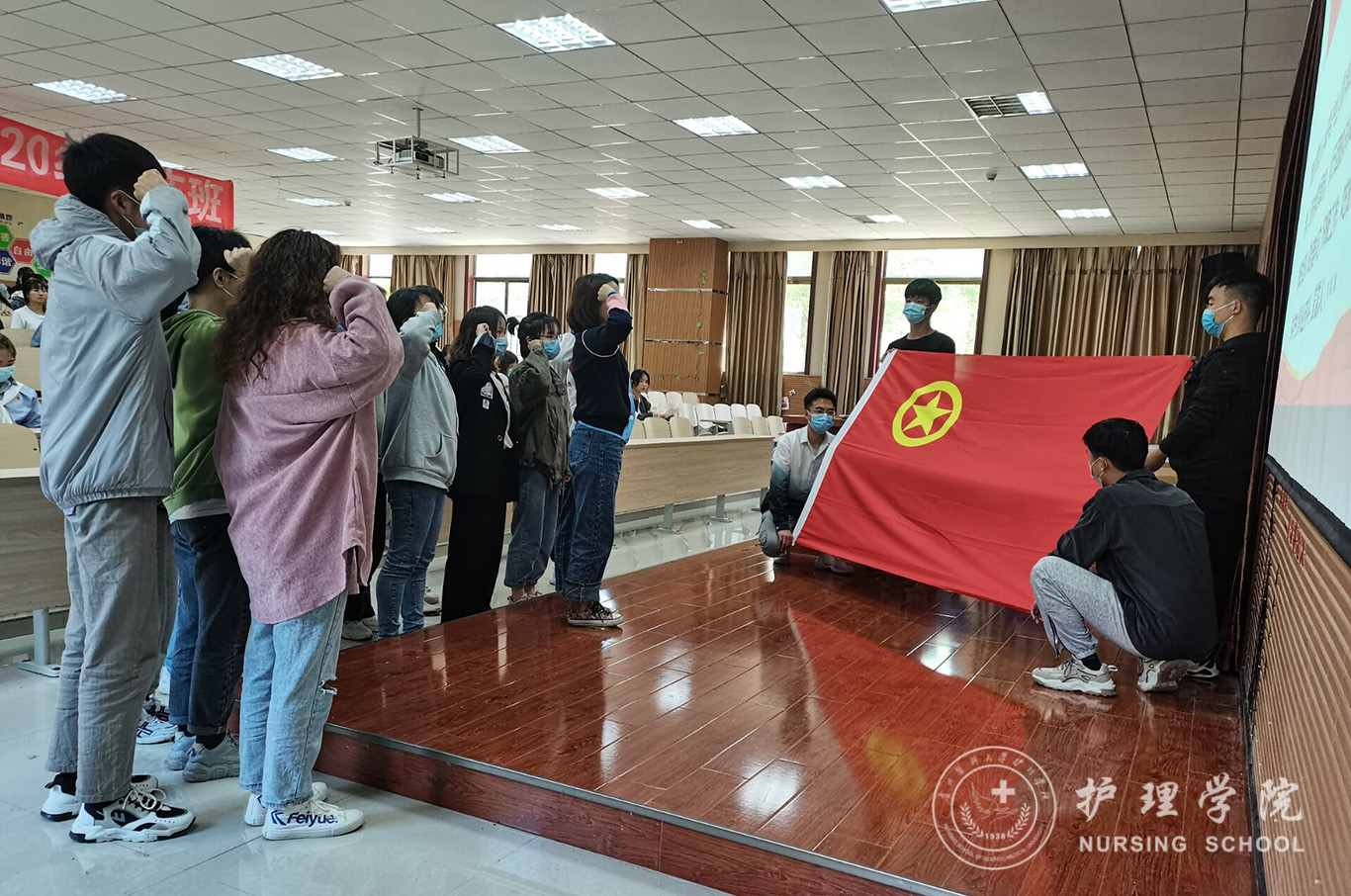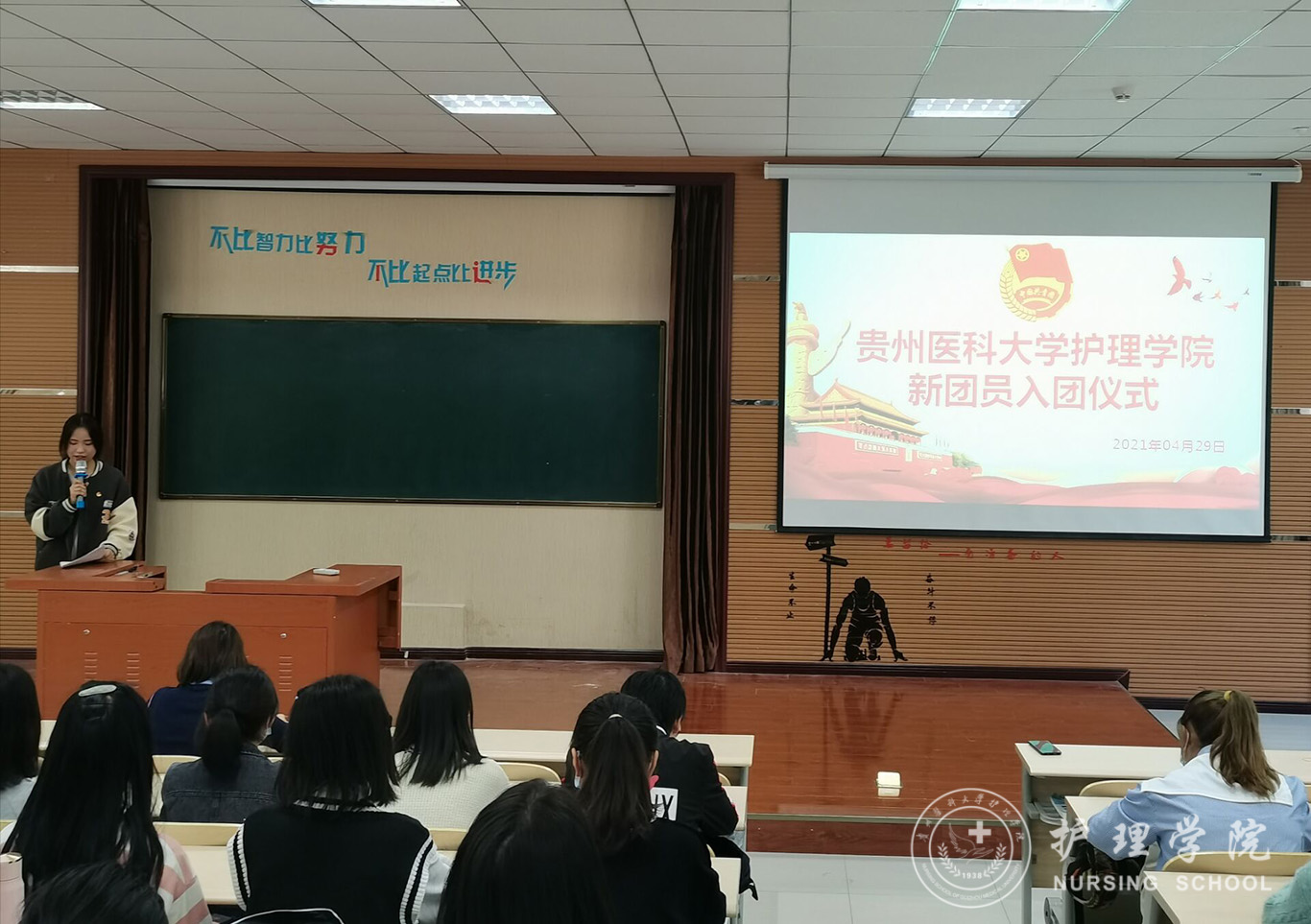 4月29日,为落实共青团中央组织开展的“学党史、强信念、跟党走”主题团日活动,williamhill中国官网入口团委于南校区百川楼1101教室隆重举行了入团仪式。参加会议的有14名新团员、2019级—2020级各班入党积极分子代表、团员代表参会,员工第三党支部书记刘妍老师出席会议,会议由团学办副主任张凤毅同学主持。