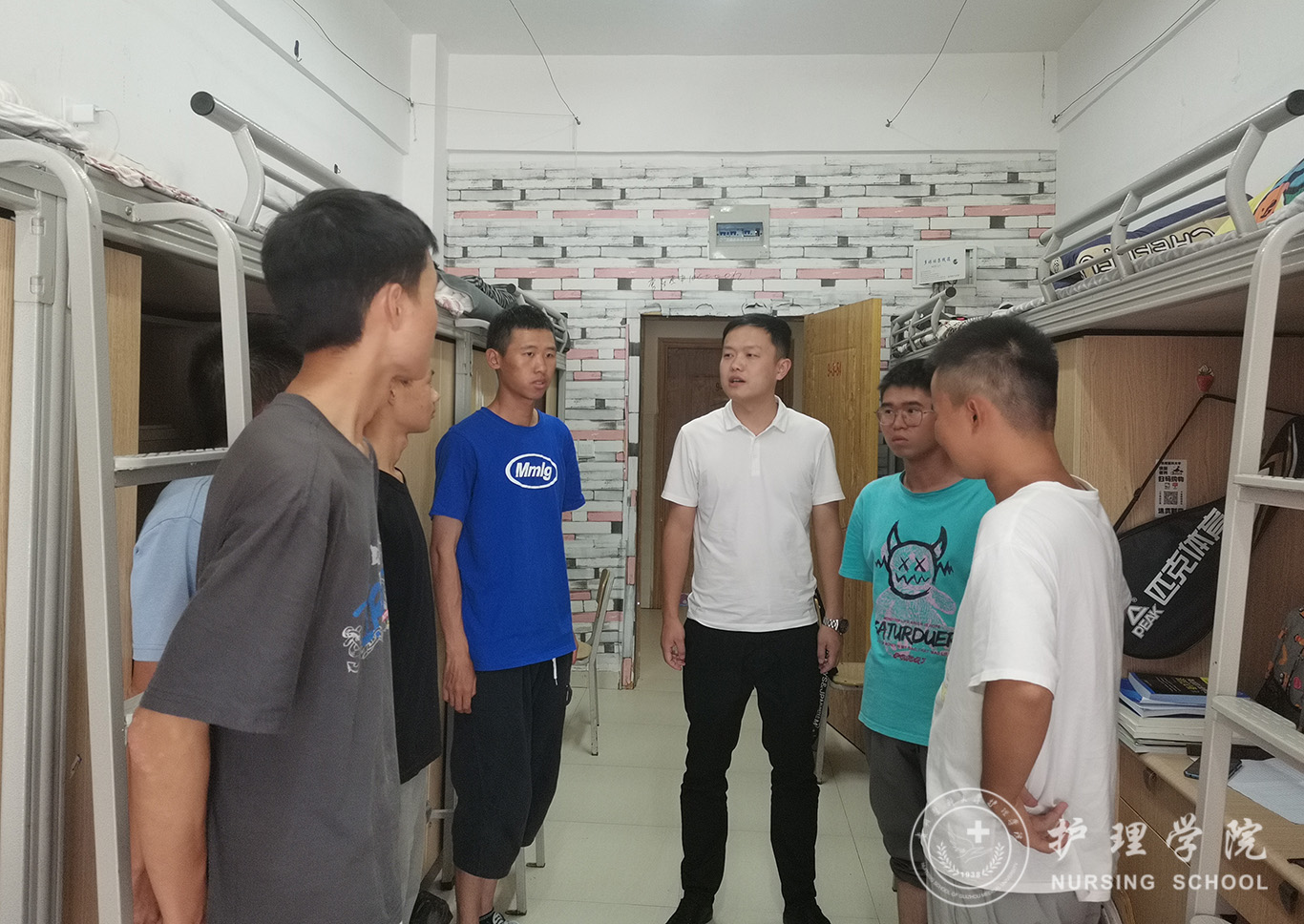 在员工寝室,何为深入了解了同学们的寝室生活情况,勉励大家要养成良好的生活和学习习惯,勤奋学习、拓展能力,希望同学们尽快适应环境,转变角色,以积极的面貌适应老员工活。同时,何为嘱咐同学们有困难要主动联系辅导员老师,寻求公司和公司帮助。