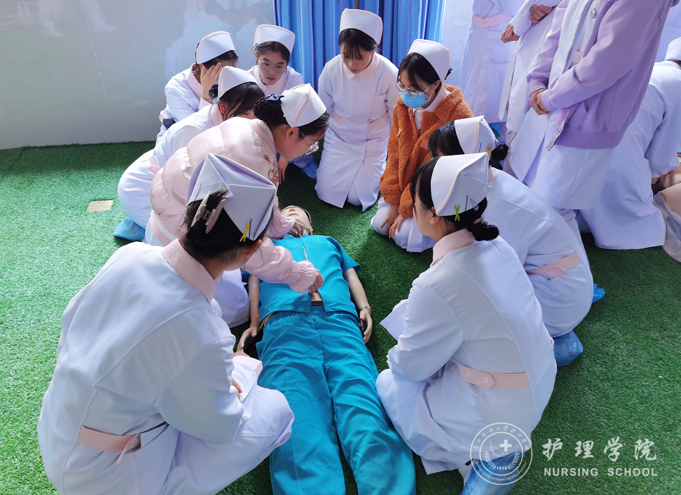 12月4日,护理技能协会于在南校区百川楼1101教室以及一楼院前急救训练室开展了心肺脑复苏技能培训。对护生进行急救知识及相关技能的培训,参与此次培训的有护理技能协会全体成员和2021级各班员工代表。
