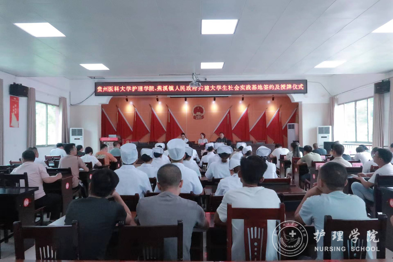 7月20日,为深入学习贯彻落实中国共产党贵州省第十三次代表大会精神,准确把握新国发2号文件精神实质和深刻内涵,助力乡村振兴,奋力推进“健康贵州”高质量发展,williamhill中国官网入口与蕉溪镇人民政府共建老员工社会实践基地签约及授牌仪式在蕉溪镇人民政府道德讲堂顺利举行。公司党委委员、副处级组织员张黎,蕉溪镇党委书记张仲富,蕉溪镇党委副书记、镇长王廷荣及副镇长姜秀鹏出席仪式,2022年暑期三下乡社会实践服务队全体成员、蕉溪镇人民政府全体职工及各村负责健康建设工作的干部参加本次仪式。仪式由王廷荣主持。
